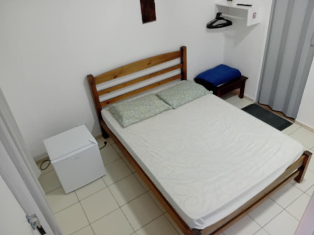 Quarto com 14m2, cama de casal, cozinha compacta privativa, com microondas, frigobar, forno elétrico 15L, cooktop 2 bocas, utensílios de cozinha. Banheiro privativo, e entrada independente. Sem ar condicionado, mas possui ventiladores potentes. Quarto para NÃO FUMANTES, com multa de 300,00 para os que infringirem essa regra, mas poderão faze-lo na área externa da casa. Hospedagens acima de 30 dias poderão usar a lavanderia da propriedade, sem custo adicional.