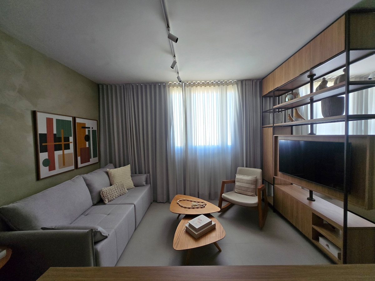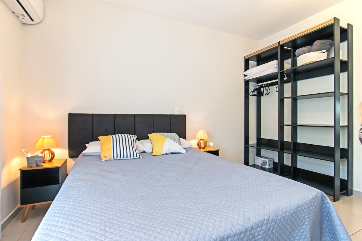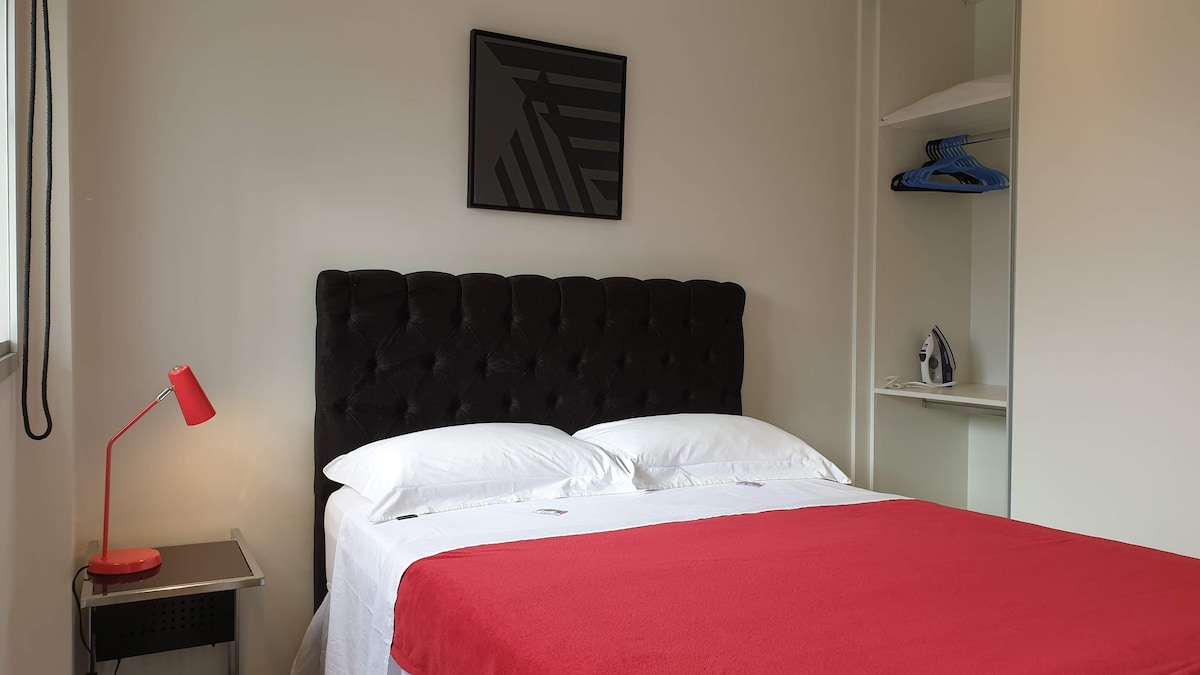 Thư giãn trong căn hộ yên tĩnh và ấm cúng, chỉ cách Transamérica Expo, Vibra và Teatro Arena BTG vài bước chân. Tận hưởng ban công, điều hòa không khí và bộ đồ giường và khăn tắm cao cấp. Bắt đầu một ngày của bạn với cà phê espresso và nấu ăn dễ dàng trong nhà bếp đầy đủ tiện nghi. Dễ dàng ra vào bằng phương tiện giao thông công cộng hoặc ô tô, với bãi đỗ xe có trả phí. Khoảng cách: Transamérica Expo 7 phút đi bộ Rung 3 phút Tokyo Marine Hall 5 phút đi Uber Lãnh sự quán 10 phút Mua sắm Morumbi 12 phút. Aut. Interlagos 20 phút.