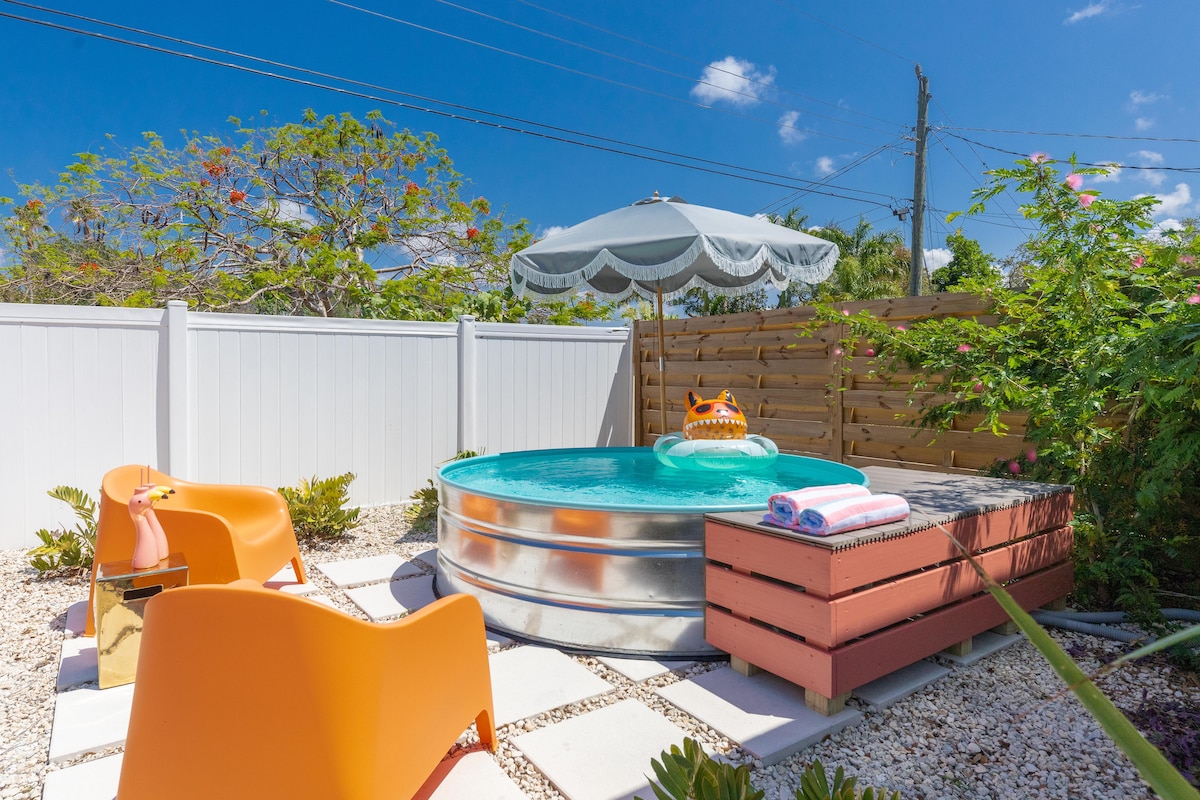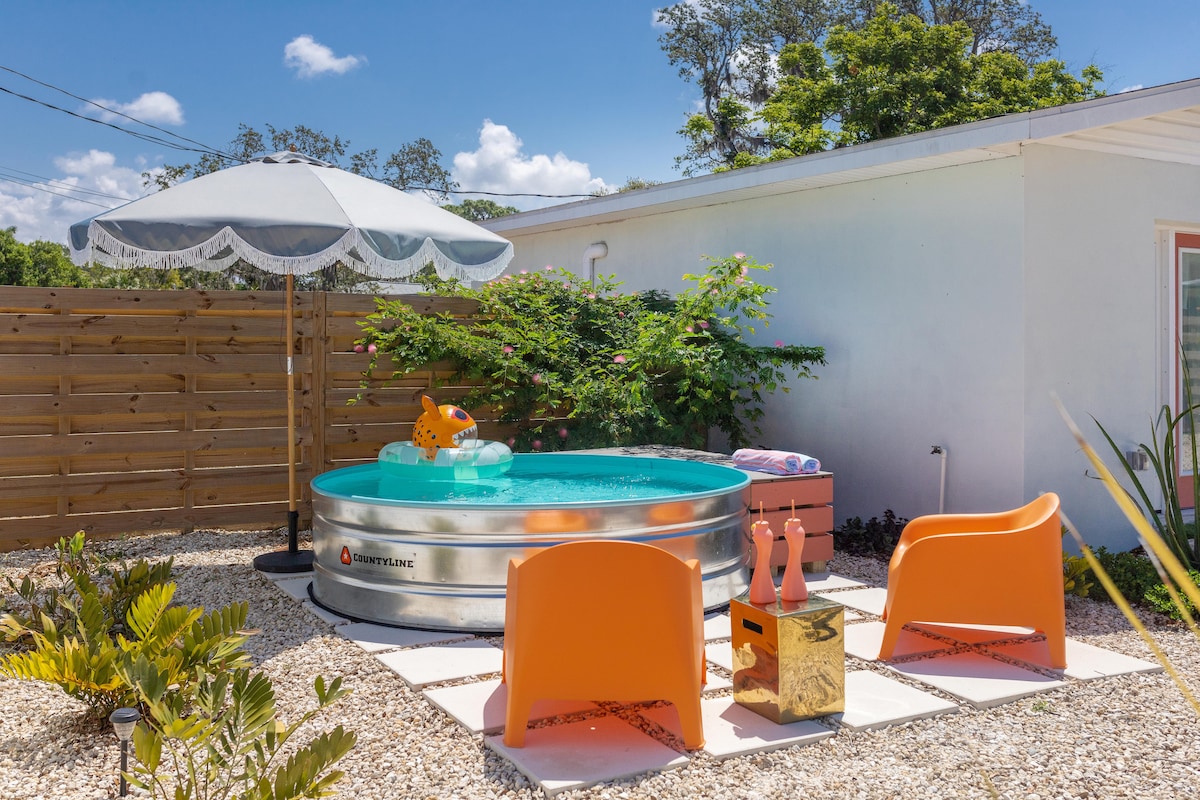 @Aloe_Stranger Dreamy + tươi! Nhà khách 1 phòng ngủ này có giường cỡ king, phòng tắm đầy đủ, nhà bếp, máy giặt/máy sấy, giường ngủ + ghế sofa ngủ. BỂ CHỨA MỚI! Đầy đủ phong cách - có cảm giác như bạn đang ở trong tác phẩm nghệ thuật của riêng mình. Cách Sân bay SRQ 1 dặm, nó tự hào có một vị trí tuyệt vời cũng như thoải mái êm ái. Cách Vịnh Sarasota 1/2 dặm, cách Bãi biển Lido 15 phút, cách Siesta Key 15 phút và nhiều bãi biển xung quanh khu vực Sarasota/Bradenton. Cách trung tâm Sarasota 10 phút, cách Bảo tàng Ringling lịch sử 1 dặm
