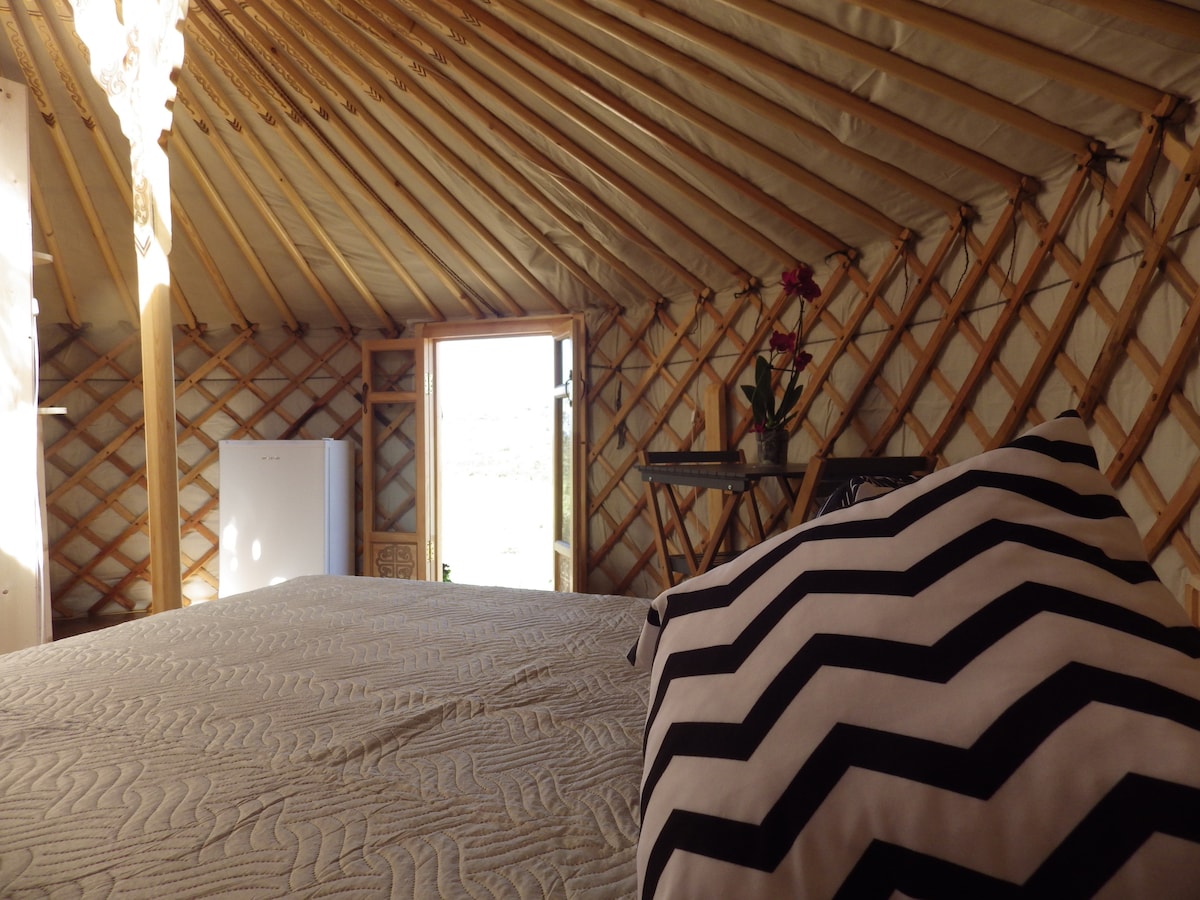 Lều yurt xinh đẹp được bao quanh bởi thiên nhiên với tầm nhìn ra biển ở đường chân trời. Bên trong lều yurt có một giường đôi lớn với phòng tắm riêng, điều hòa không khí, quạt và tủ lạnh. Bên ngoài có một khu vườn riêng với nhà bếp, bbq, ghế tắm nắng và bàn gia đình. Bãi đỗ xe riêng ngay phía trước. Bữa sáng tự làm được bao gồm và giao bởi lều yurt. Bạn sẽ thấy bánh mì tươi, bánh nướng xốp, mứt, trái cây và nước ép trái cây, và bạn sẽ tìm thấy tất cả các thiết bị để tự pha cà phê và trà.
