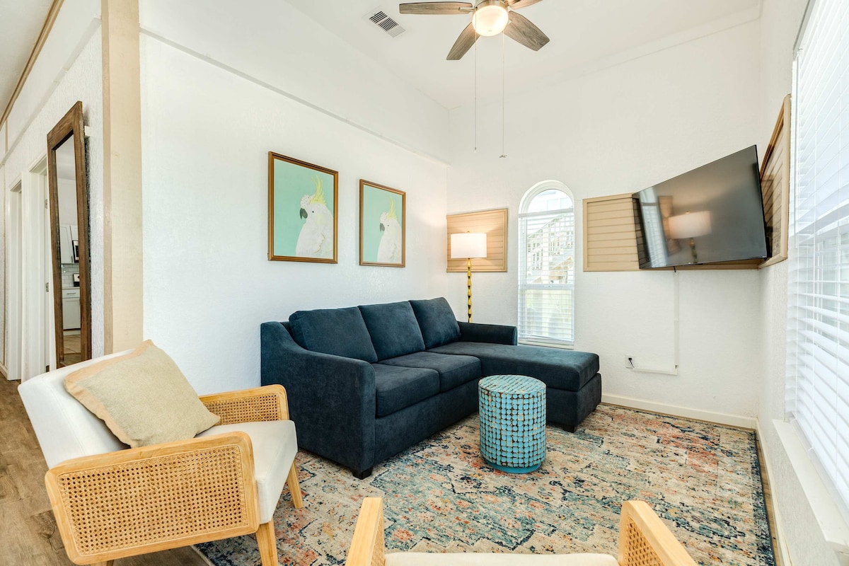 Enjoy the calming sound of waves crashing against the shore from this 1-bedroom, 1-bath vacation rental nestled in Surfside. This completely updated home is equipped with 5-star amenities, a bright modern kitchen, and a furnished deck for enjoying the ocean breeze. Your favorite beach-going activities are just a short walk away, while popular attractions like Moody Gardens and the Historic Pleasure Pier are just a quick drive up the island! At days end, dine with the locals at popular hotspots.
