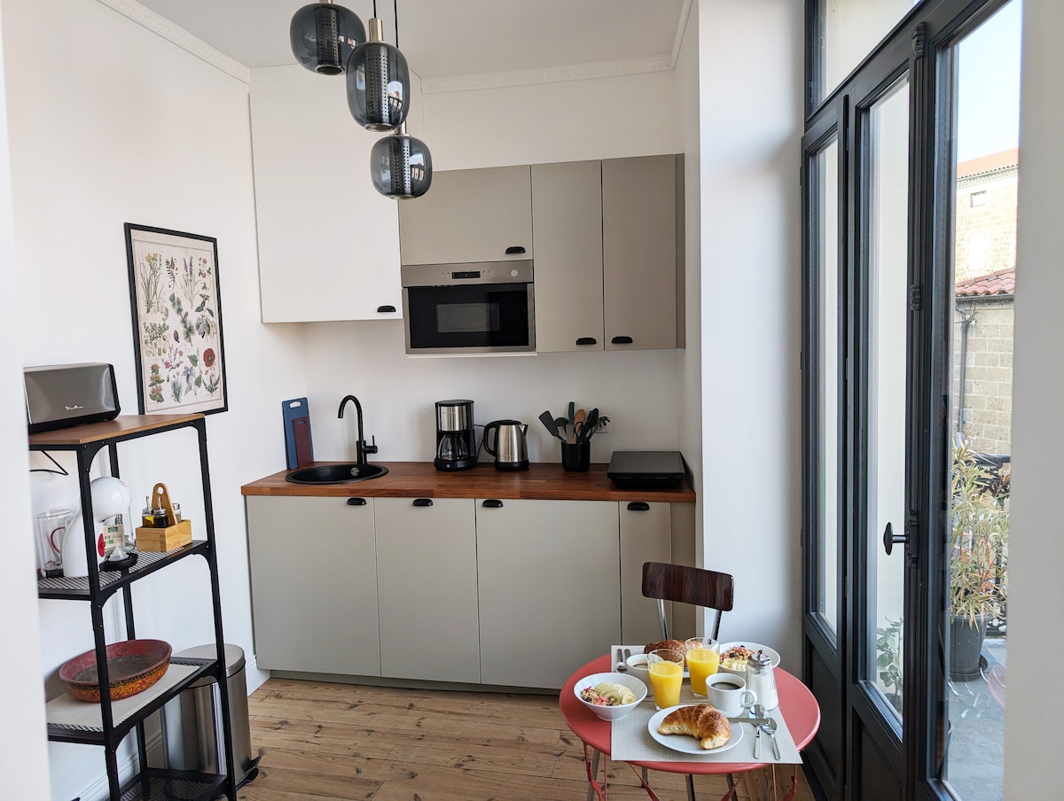 Căn hộ ở trung tâm Saugues, ở Gévaudan, trên đường St. James. Mã kỹ thuật số và quyền truy cập hộp khóa. Bãi đỗ xe miễn phí, Tour des Anglais, Musée de la Bête, văn phòng du lịch, nhà thuốc, nhà hàng... 2 phút đi bộ. Khả năng cung cấp nhà để xe có thể chứa xe đạp, xe máy. Thiên đường cho người đi xe Enduro, người đi bộ đường dài, người đi xe đạp, Saugues là một nơi đặc quyền cho các chuyến đi chơi địa hình và thiên nhiên. chúng tôi rất mong được đón tiếp bạn