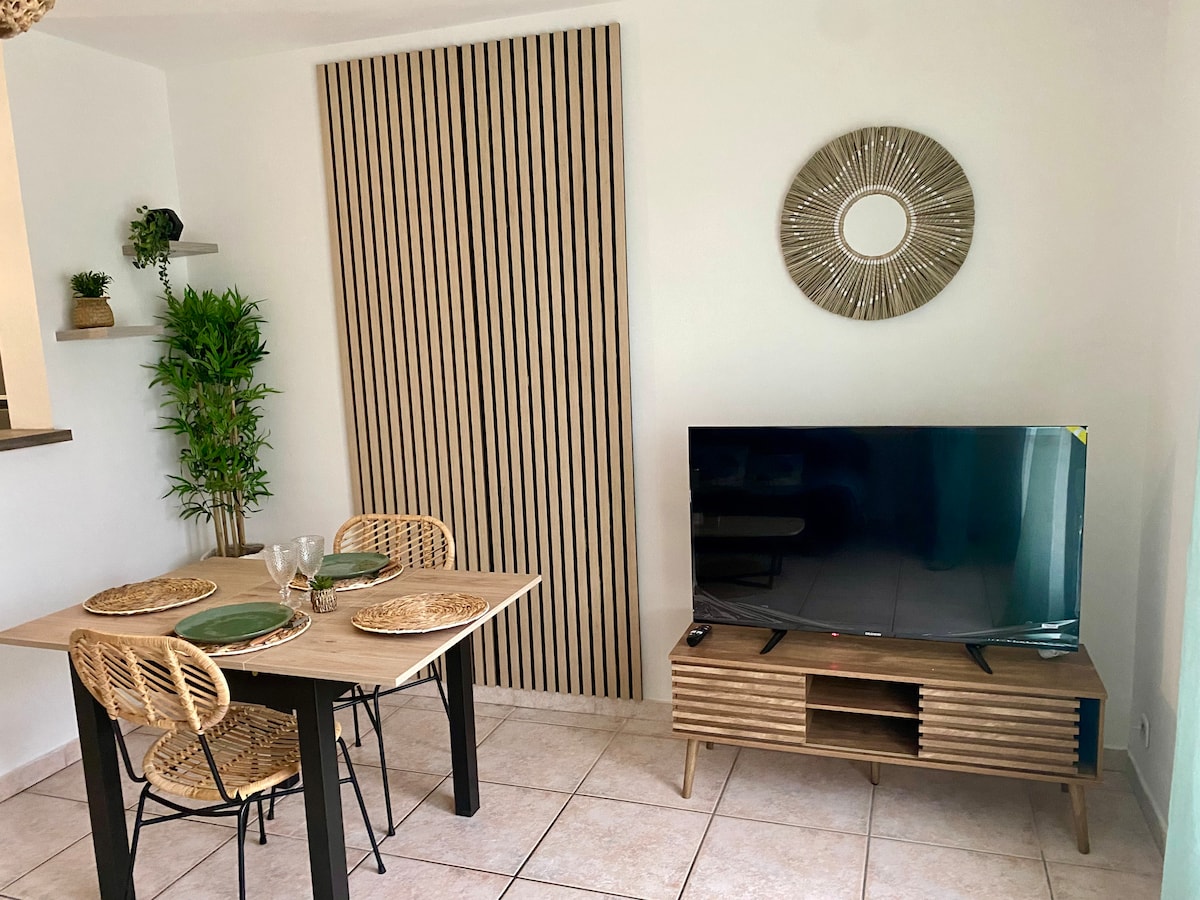 Khám phá T3 quyến rũ của chúng tôi trong một trang trại Provencal, nép mình ở Pujaut gần Avignon. Tận hưởng sân hiên có bóng râm dưới gốc cây ô liu, lý tưởng cho các bữa ăn ngoài trời của bạn và với tầm nhìn tuyệt đẹp ra Mont Ventoux! Chỗ ở được trang bị đầy đủ tiện nghi: nhà bếp, điều hòa, bàn làm việc, Wi-Fi và tiệc nướng ngoài trời. Gần các kỳ quan của khu vực: Avignon, Orange, Châteauneuf-du-Pape và Pont du Gard. Có bãi đỗ xe riêng. Ở tại trung tâm Provence để có một kỳ nghỉ khó quên!