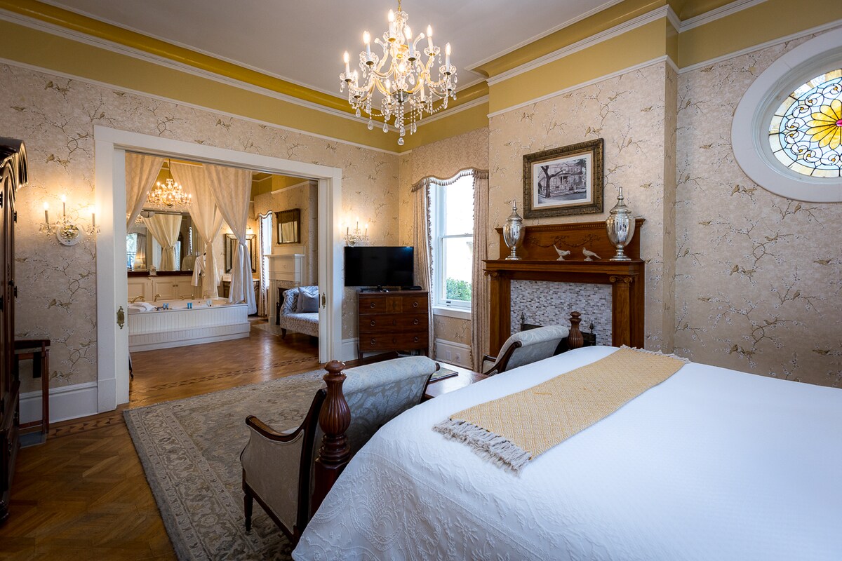 2nd Floor Corner King Bedroom overlooking West Liberty St in Savannah's Historic District
