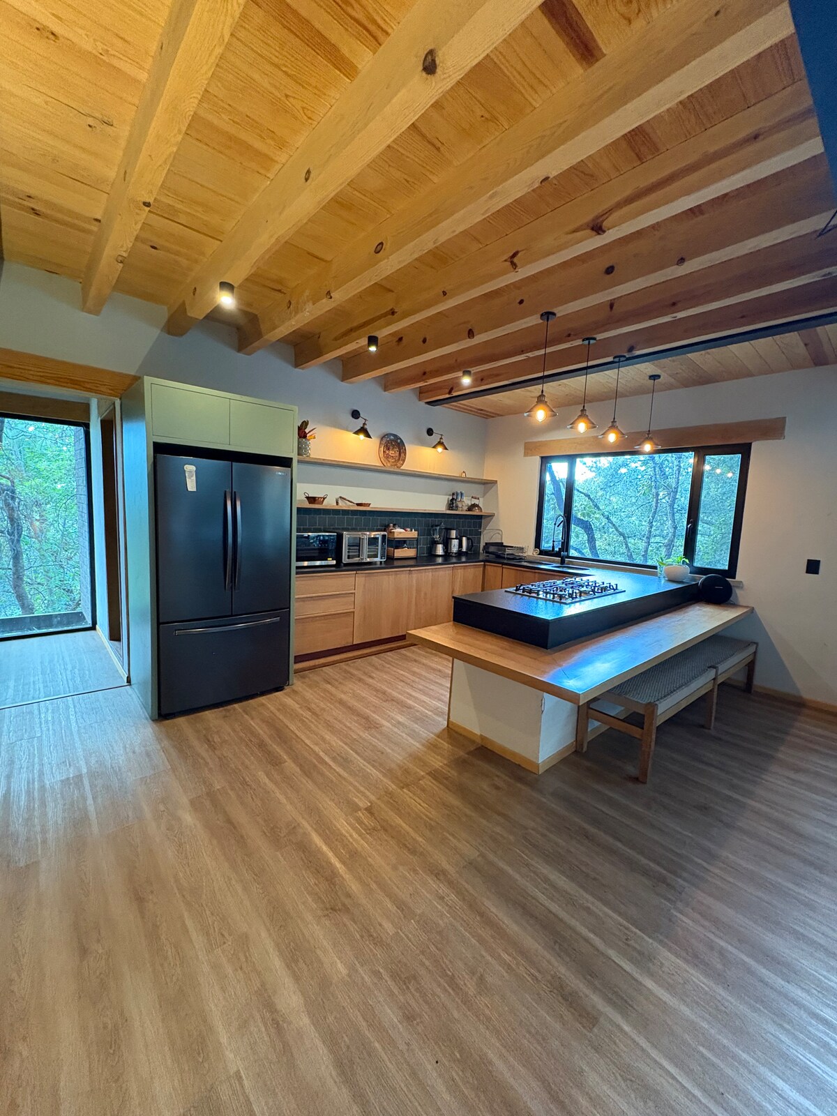 Tu refugio en Tapalpa A solo 600 metros de la plaza principal y la icónica iglesia, disfruta de comodidad, privacidad y la ventaja de caminar a tiendas, panaderías, carnicerías y más. Vive el encanto de este Pueblo Mágico sin depender del coche. El Espacio 1 recámara con cama King Size y baño completo. Sala con sofá cama para 2 adultos y otro baño completo. Clima controlado con minisplits frío/calor en recámara y sala. Decoración industrial y cortinas blackout en toda la casa.