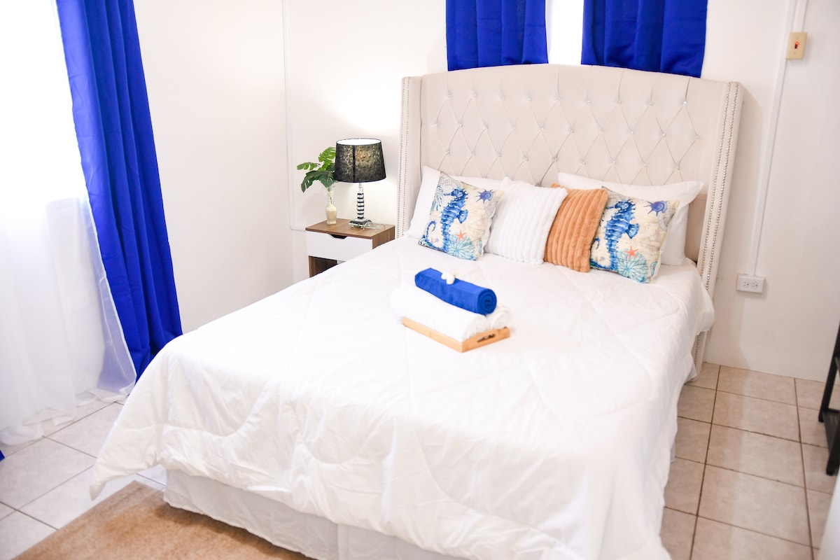 Nuvana is nestled in the heart of Scarborough, Tobago, offering free parking. No need to drive – it’s just a short walk to the ferry port KFC Subway Royal Castle and supermarkets. Relax in the living room with a 70” TV or the bedroom with a 55” TV. Netflix Tubi and Hulu are all available for binge-watching. Finally, unwind in our spacious bathtub with complimentary bath salts to soothe your body aches.