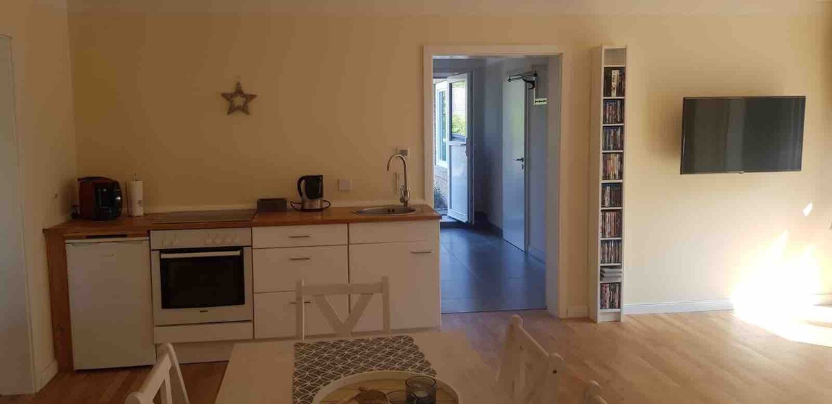 Cảm thấy như ở nhà trong căn hộ ấm cúng của chúng tôi gần bãi biển và rừng và không xa trung tâm Flensburg và biên giới với Đan Mạch. Căn hộ nằm ở tầng hầm của một ngôi nhà tách biệt ở một vị trí yên tĩnh nhìn ra một khu vườn giống như công viên Căn hộ bao gồm bếp ăn được trang bị đầy đủ tiện nghi, khu vực sinh hoạt và ăn uống, phòng ngủ với giường đôi và phòng tắm với bồn tắm và nhà vệ sinh riêng. Sân hiên bằng gỗ và ngoài trời có mái che Wifi nhanh và TV thông minh 4K