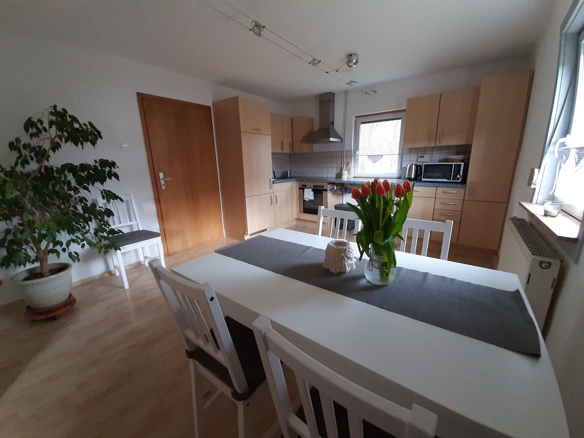 Chào mừng bạn đến với ngôi nhà nghỉ dưỡng của chúng tôi ở Oberthulba bình dị! Rộng 180 m² có thể chứa tối đa 8 người – hoàn hảo cho gia đình, bạn bè hoặc nhóm muốn tận hưởng kỳ nghỉ tuyệt vời ở Rhön. Đặc biệt đáng chú ý là khu vườn rộng 1600 m2 với bát lửa và chỗ ngồi. Vị trí bình dị là nơi lý tưởng để đi bộ đường dài, đi xe đạp hoặc thư giãn. Chúng tôi rất mong được chào đón bạn sớm với tư cách là những vị khách đầu tiên của chúng tôi!
