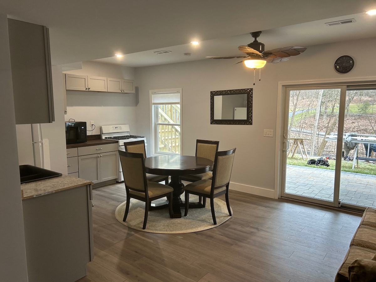 Căn hộ một phòng ngủ - tất cả các tiện nghi gắn liền với nhà của chúng tôi. Lối vào riêng. Sân sau lớn nhìn ra sông - lửa trại, bếp nướng, ngồi lại và thư giãn. Đừng quên tận hưởng nhà thuyền mộc mạc của chúng tôi. Vào mùa đông, chúng tôi cách Núi Willard mười phút lái xe. Một ngọn núi trượt tuyết địa phương nhỏ với 12 con đường mòn và giá vé rất phải chăng.