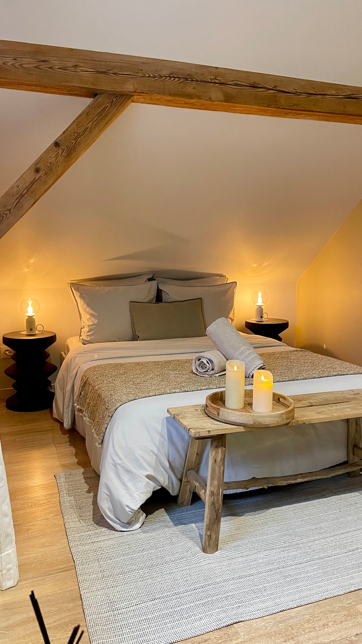 Our apartments are located on the upper floor and each have 4 beds. The dining area, kitchen, and sleeping areas are all in one room. Only the bathrooms, consisting of a toilet, shower, and sink, are in a separate room. A highlight, especially for families with children, is the gallery (second level) where each apartment has a double bed. If you like country style with a Mediterranean touch, you've come to the right place.
