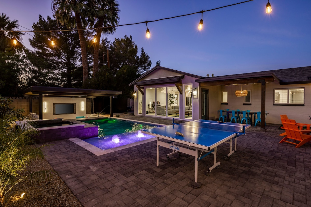 KHU nghỉ dưỡng sức khỏe HOÀNH TRÁNG nhất ở Scottsdale! Chào mừng bạn đến với KỲ NGHỈ 4 giường, 2 phòng tắm sang trọng của chúng tôi nép mình ngay trung tâm Scottsdale! Bạn đã phát hiện ra điểm đến số1 về Sức khỏe thể chất/tinh thần. Chỉ cách "Khu phố cổ" sôi động 2 dặm và cách ASU một quãng lái xe ngắn. Tiện nghi chính: - Phòng tập thể dục dịch vụ đầy đủ - Phòng xông hơi "Plunge" XL - Bồn tắm nước lạnh "Plunge" - Nệm King Memory Foam - Hệ thống âm thanh SONOS - Bể bơi lớn - Hố lửa - Đặt màu xanh lá cây -Corn-Hole Lane & Boards - Bóng chuyền nước -Ping Pong Table