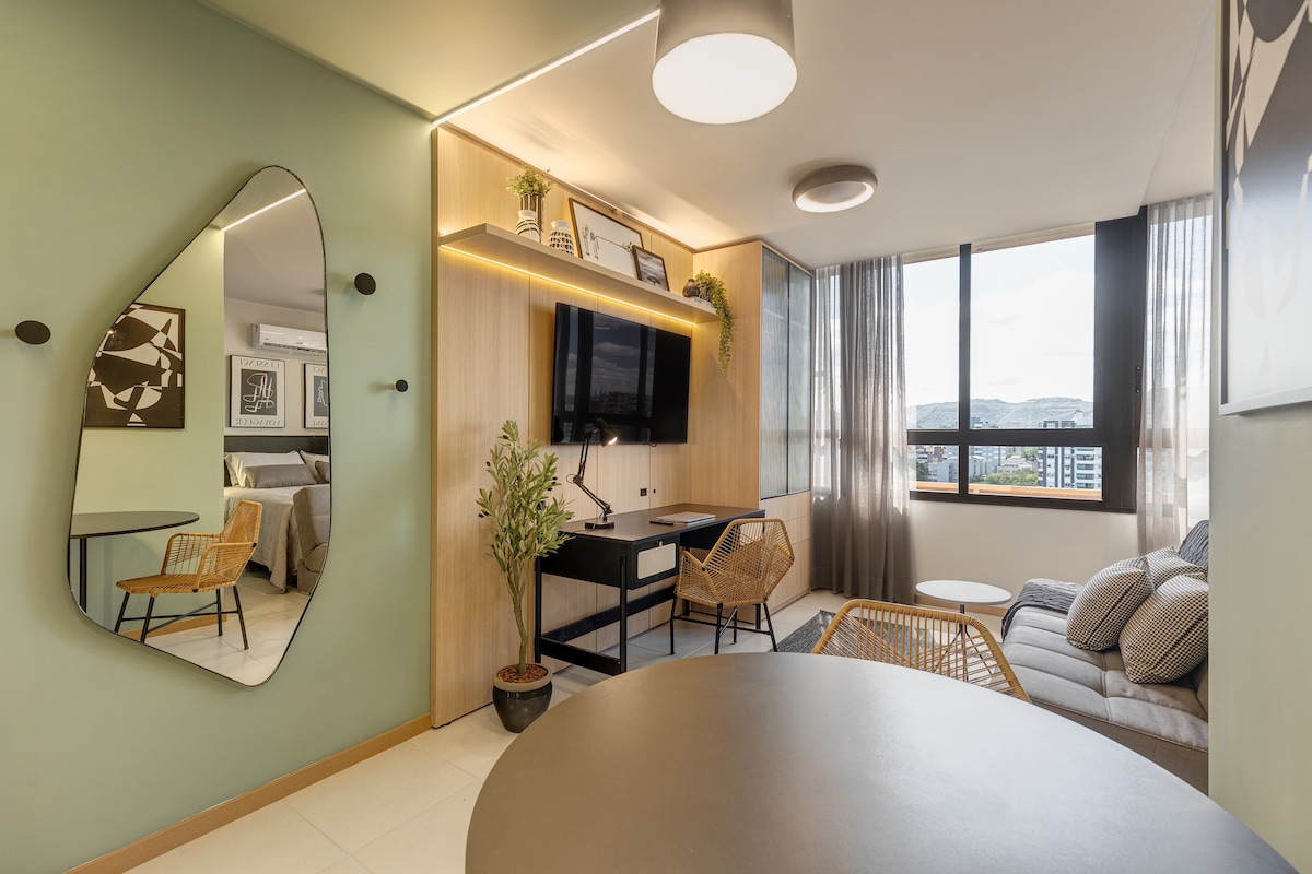 Kitnet có phòng tắm riêng và gara. Khu vực chung với BBQ và giày dép ngoài trời. Cách bến xe buýt 4 phút, gần Hospitais de Caridade Astrogildo de Azevedo (HCAA) và São Francisco, các quán bar, chợ, nhà hàng và trung tâm thương mại Royal Plaza và Monet Plaza. Cách trung tâm 10 phút đi bộ. Thú cưng của bạn được chào đón! Nhà để xe cho tối đa 3 xe ô tô liên tiếp, 1 xe ô tô cho mỗi đặt phòng (có thể cần phải di chuyển xe). Điều hòa nhiệt độ, lò vi sóng, minibar, vòi sen điện, TV thông minh và Wi-Fi.