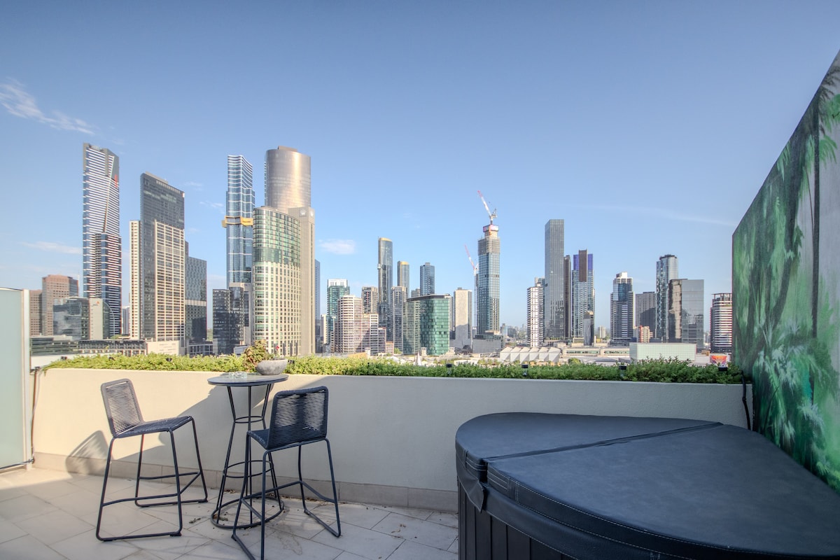 Một trong những Airbnb tuyệt vời nhất của Melbourne! Phục vụ tầm nhìn toàn cảnh sông Yarra 270 độ, căn penthouse này mang đến sự pha trộn giữa thiết kế sang trọng và hiện đại, và lối vào thành phố thuận tiện. Nó cung cấp cơ sở hoàn hảo cho những ai muốn tận hưởng Melbourne một cách tốt nhất. Cho dù bạn là một chuyên gia đang tìm kiếm một nơi nghỉ dưỡng đô thị hay ai đó đang tìm kiếm một căn hộ phong cách ngay trung tâm thành phố, Aura mang đến cả sự thoải mái và tiện lợi, từ sân thượng với tầm nhìn ra các tiện nghi hiện đại.