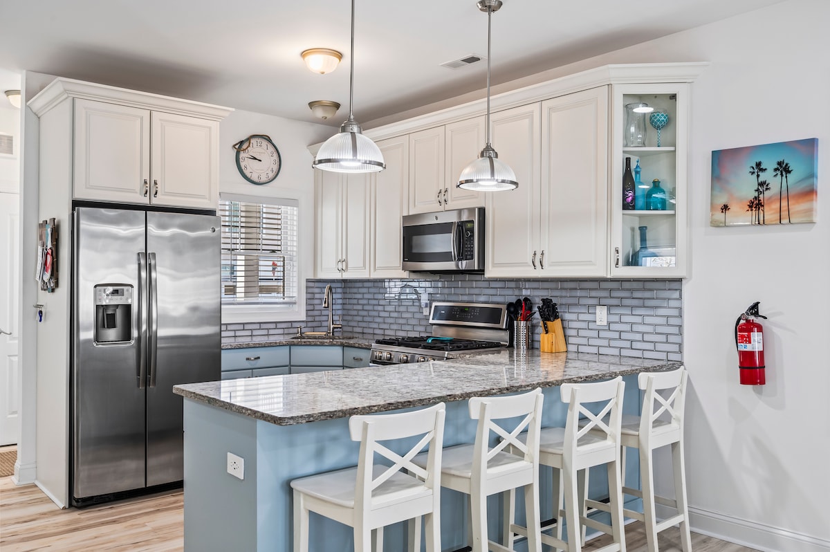 🏝️ An tâm đặt phòng. Breezy Beach Stays tự hào có hơn 1.300 đánh giá năm sao và xếp hạng chủ nhà 4,98, đưa chúng tôi vào top 1% chủ nhà trên Airbnb. 🏝️ "Chỗ ở này theo nghĩa đen giống như một bảng Pinterest. Nó có mùi tuyệt vời, dễ chịu và sạch sẽ." -Taylor Nhà ☞ 2 phòng ngủ 650m2 có bếp đầy đủ ☞ Khăn trải giường và khăn tắm Sân sau☞ riêng có vòi sen ngoài trời ☞ 3 dãy nhà đi bộ đến bãi biển và đi xe ☞ Máy giặt và máy sấy tại chỗ Đã bao gồm☞ 4 huy hiệu bãi biển (giá trị 200 USD, chỉ trong mùa)