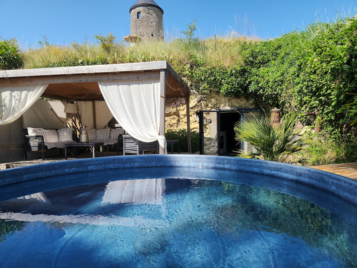 Le Tunnel est une habitation troglodytique de 27 mètres de long, entièrement creusée dans la roche. Cependant le taux d'humidité est variable à certaines périodes de l'année. Si vous cherchez un logement hors normes, le Tunnel est fait pour vous ! Vous disposerez d'un bassin pour vous rafraichir, d'un salon de jardin et d'un barbecue mexicain.