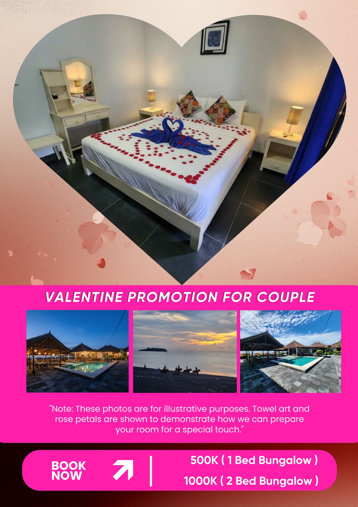 Biệt thự rộng rãi 4 người trên khu nghỉ dưỡng trong một thung lũng yên tĩnh, cách bãi biển 1 km và cách trung tâm Senggigi 2,5 km. Biệt thự nằm trên một khu nghỉ dưỡng nhiều biệt thự, với khu vườn trung tâm và hồ bơi chung rộng 25 x 4 mét với hồ bơi nước xoáy. Ở tầng trên của biệt thự có hai phòng ngủ, mỗi phòng có một phòng tắm và một ban công. Biệt thự có khu vực sinh hoạt ngoài trời với khu vực tiếp khách và khu vực ăn uống. Ngoài ra còn có một khu vực thư giãn nhỏ trong vườn. Trong gia đình có sự trợ giúp hàng ngày.