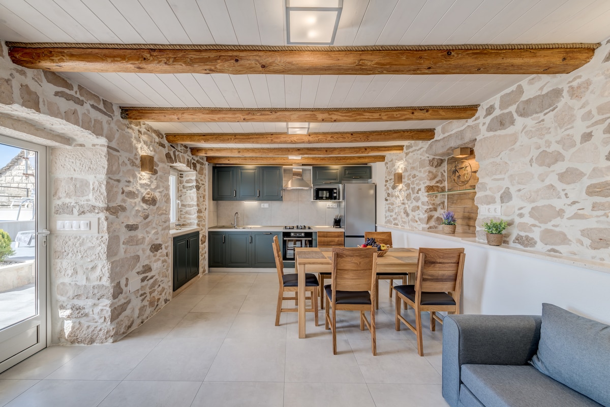 This traditional Dalmatian stone house, originally built 200 years ago and renovated in 2025, is located in a sparsely populated area, ideal for those seeking peace and a truly special getaway. Its authentic character has been carefully preserved and enhanced with modern touches. Surrounded by natural beauty and tranquility, it offers a deeply relaxing atmosphere where every guest can enjoy a unique experience, making their stay truly unforgettable.