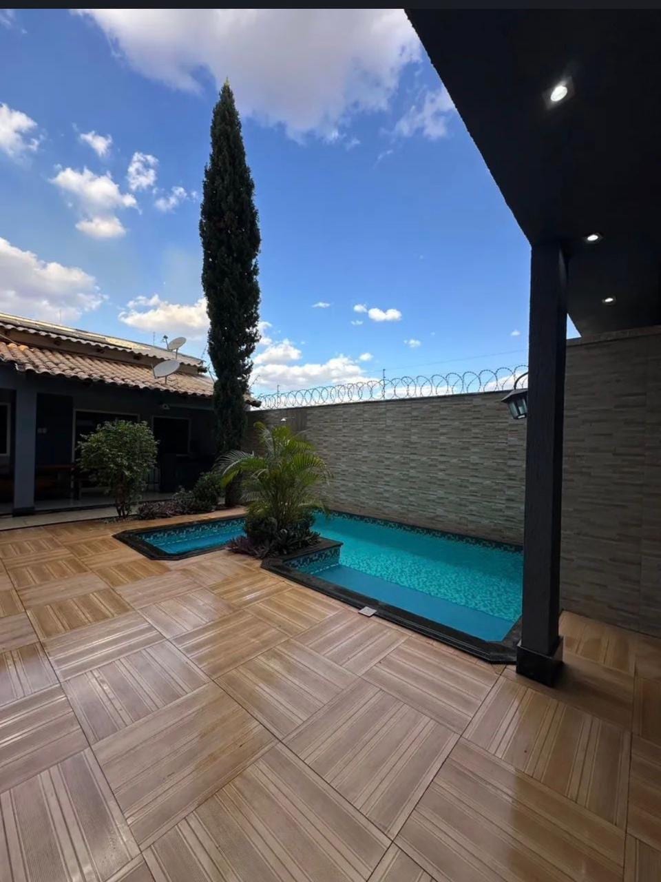 Casa premium e espaçosa, ideal para famílias e grupos. Possui 3 quartos (1 suíte + 1 quarto com 2 camas de solteiro 1 quarto com acesso ao banheiro social) e acomoda até 6 hóspedes, com sofá para dormir . Área externa com piscina aquecida, área gourmet, churrasqueira a carvão, mesa para 10 pessoas, ducha e lavabo externo. Ambientes bem decorados e garagem para 1 carro. 📍 Senador Canedo: 15 min do Shopping Flamboyant, 17 min do Autódromo de Goiânia, 20 min do Aeroporto.