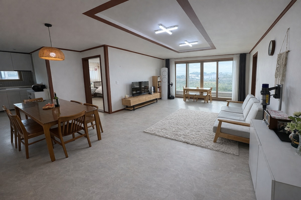 Chào mừng bạn đến với Bãi biển Daecheon Apartelle. Bạn có thể sử dụng dụng cụ nướng thịt, tiện nghi vòi sen bên ngoài, 3 phòng, 2 nhà vệ sinh, phòng khách rộng rãi, nhà bếp và các phòng khác. Bạn có thể đi bộ đến Bãi biển. Chúng tôi luôn cân nhắc sự thuận tiện của bạn để bạn luôn được nghỉ ngơi thoải mái. Chúng tôi sẽ nỗ lực hết mình để thực hiện chuyến đi tuyệt vời của bạn với gia đình yêu thương của bạn.