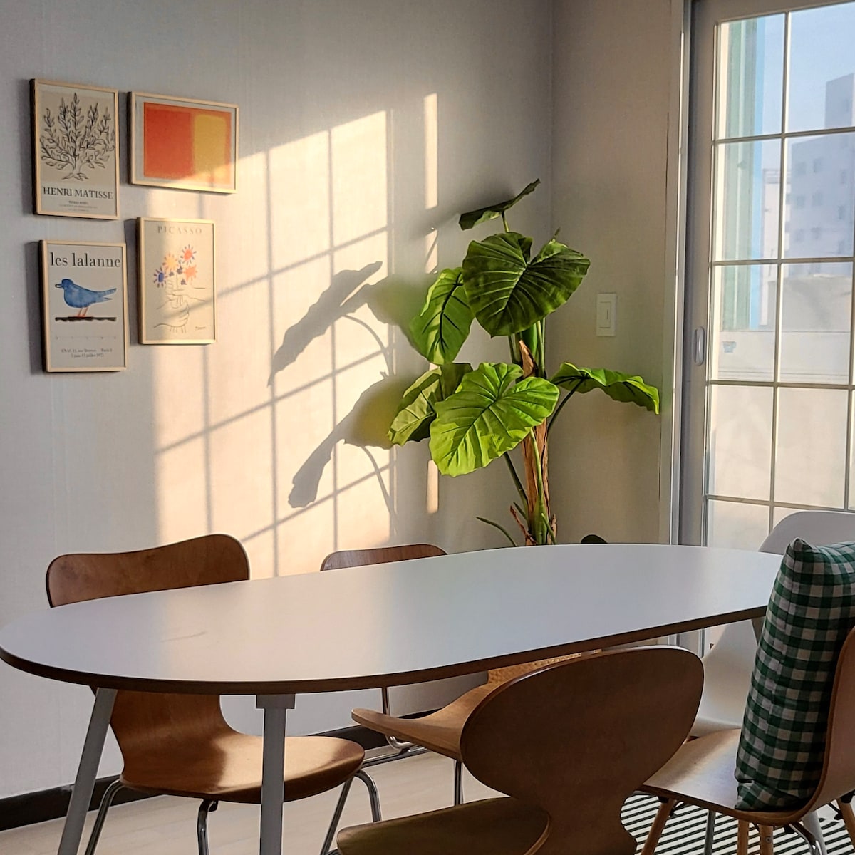 🎈동대구역 인근, 햇살 가득한 2룸 숙소입니다 😊 당일 예약 및 늦은 체크인도 가능해 급하게 찾으시는 분들께도 편하게 이용하실 수 있어요 🐶 소형 반려견 동반 가능 숙소입니다 . 🌿 여유로운 쉼, 아늑감성숙소 동대구역에서 도보 10분 거리, 빈티지한 무드와 식물 인테리어가 어우러진 21평 아늑한 숙소입니다. 🏡 숙소는 3층에 위치/ 엘리베이터는 없어요. *작은 운동 후 만나는 따뜻한 쉼, 여유롭게 올라와주세요 :) 늦잠 자도 괜찮아요. 체크아웃은 오후 1시^^ 반려동물도 동반 가능하며, 1층에는 GS25 편의점이 있어 편리성 좋아요. ✨ 숙소 정보 요약 동대구역 도보 10분 /버스 정류장 도보 3분 3층 도보 이동 (엘리베이터 없음) 체크아웃 오후 1시 /캐리어 보관 가능 반려견 1마리 동반 가능 (소형견 기준) 2룸, 넓은 거실 21평 /퀸사이즈 침대 3 넓은 6인용 테이블 /1층 GS25 편의점 감성 식물 인테리어 /빈티지 무드조명