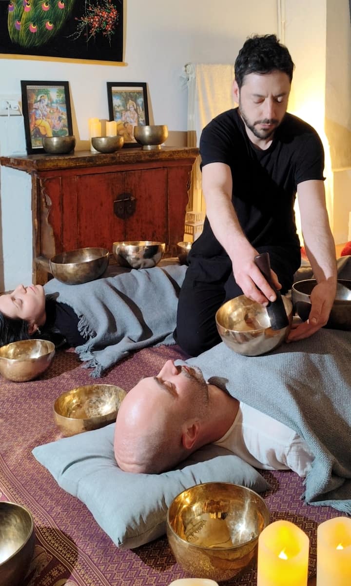 Đây là một liệu pháp với chuông Tây Tạng được thực hiện đồng thời cho 2 người, nằm cạnh nhau. Các rung động hài hòa lan tỏa trên cả hai, ủng hộ thư giãn sâu và thư giãn chung. Buổi học phù hợp với bất kỳ ai muốn chia sẻ một khoảnh khắc hạnh phúc và hòa hợp với người thân.