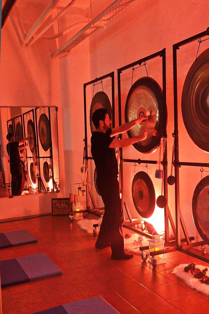Đề xuất diễn ra trong một nhóm và bao gồm một bồn tắm âm thanh với cồng chiêng trong một môi trường yên tĩnh. Âm thanh sâu và liên tục của nhạc cụ tạo ra một điều kiện thuận lợi cho việc giải phóng căng thẳng, hài hòa bên trong và yên tĩnh tinh thần. Đây là một buổi học phù hợp cho những ai muốn trải nghiệm một khoảnh khắc tái tạo trong một bối cảnh thiền định chung.