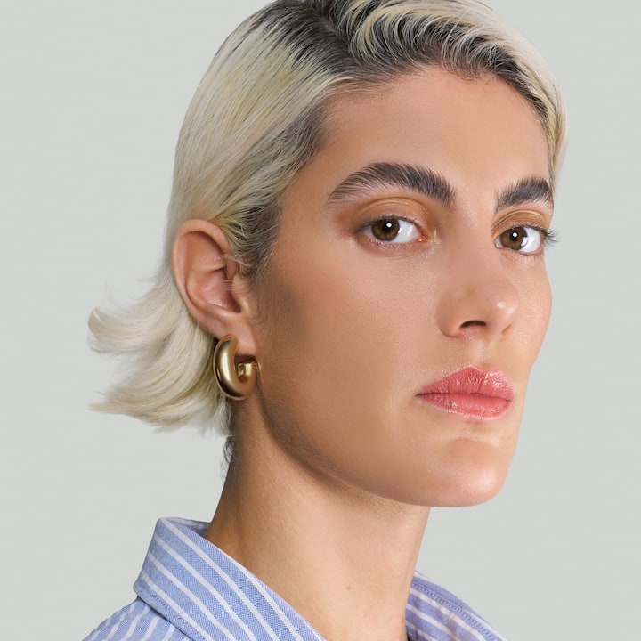 Nước da săn chắc và sáng bóng, ánh mắt sâu thẳm và đôi môi rõ nét: mọi chi tiết đều được chăm chút để tạo nên vẻ ngoài cực kỳ nữ tính này.