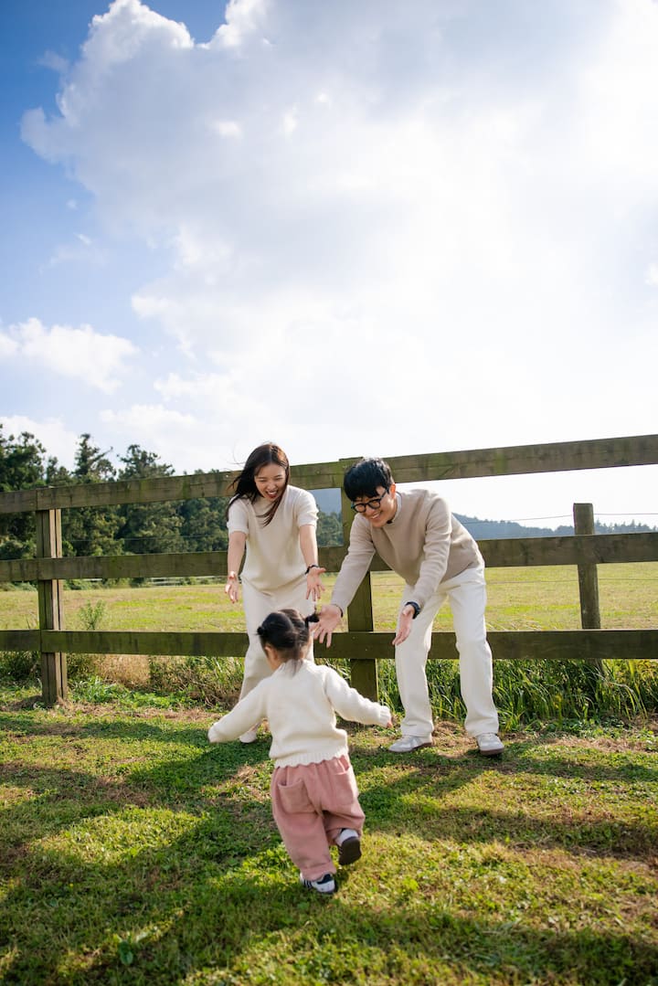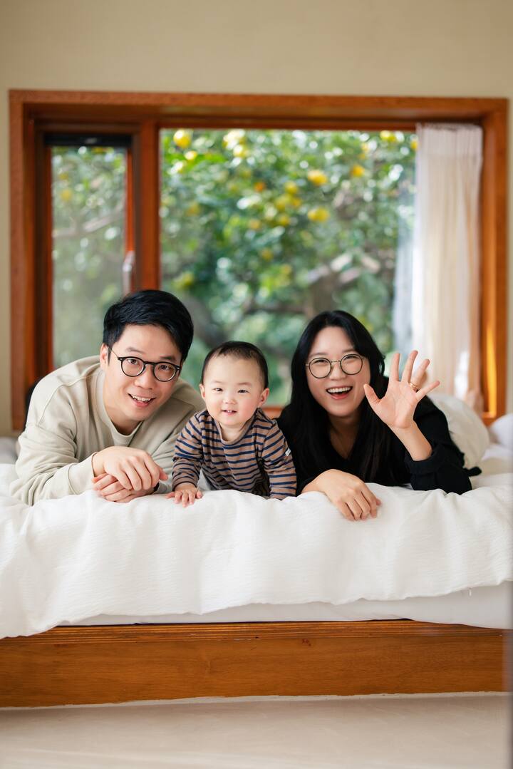 Đây là một bức ảnh gia đình ngoài trời ghi lại cuộc sống hàng ngày tự nhiên và tiếng cười của một gia đình bằng cách chọn một nơi có thể ghi lại tốt nhất mùa của Jeju.