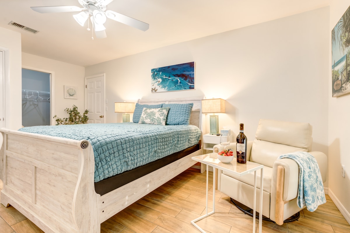 The Retreat sleeps 4 guest comfortably. Our 2 bedroom, 2 bathroom home features a pool with a waterfall and fenced backyard. This quaint paradise will make you feel relaxed sitting by the pool enjoying a good book with a drink while you can hear the breeze going through the palms in the backyard. It’s located on a quiet street. But minutes away from different beaches, golf courses, shops and restaurants, attractions and parks.Something to do for the whole family.