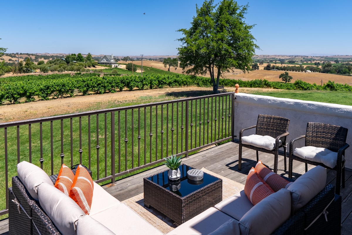 Nestled in the heart of Paso’s vineyard country, our exquisite farm villa "Los Olivos" offers a serene escape surrounded by rolling vine-covered hills. Experience the charm of wine country living with gorgeous, stylish & comfortable accommodations with panoramic views. Sip Paso's estate-grown wines on your private deck, explore near by vineyards, or just relax in the HotTub. Perfect for family getaways or peaceful retreats, immerse yourself in the beauty and tranquility of our unique villa.