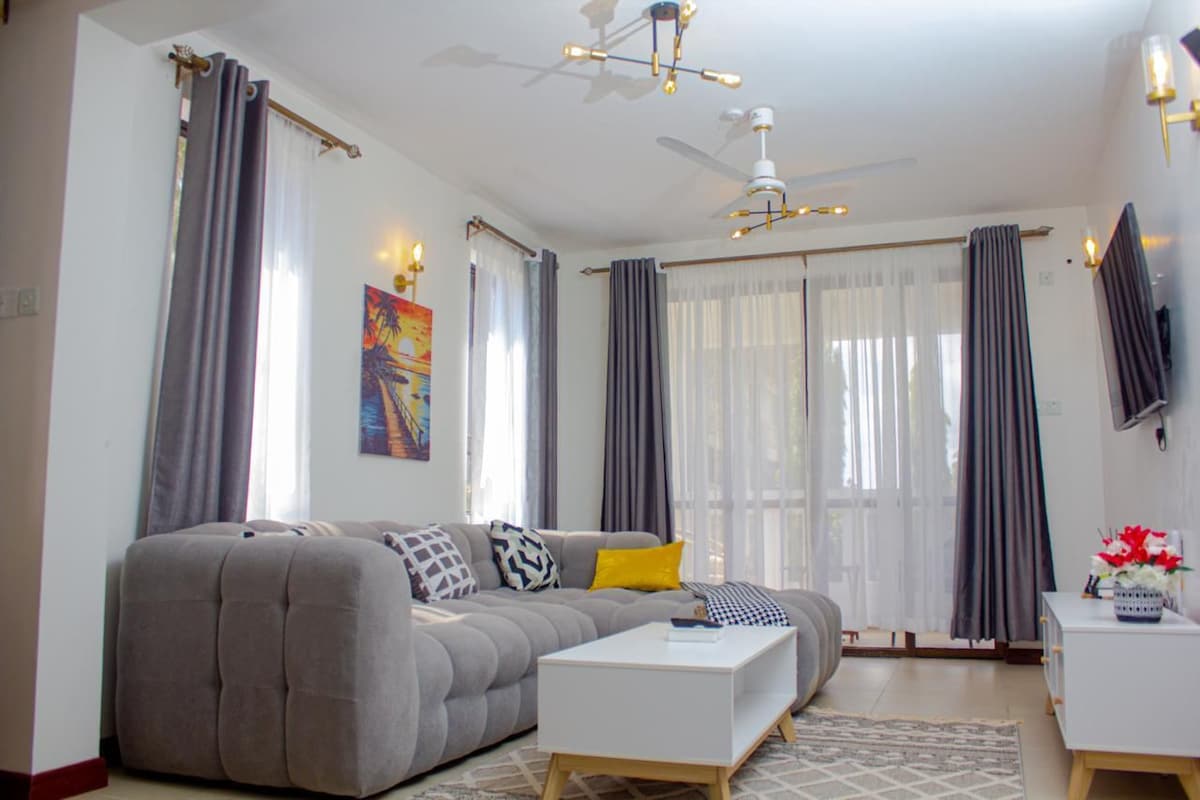Thư giãn với cả gia đình tại căn hộ beachfroont yên bình này, nằm ở tầng trệt Ngôi nhà phù hợp với tối đa 6 người. Bãi biển chỉ cách đó vài phút đi bộ và các trung tâm thương mại nằm gần đó khoảng 8 phút. Bếp của chúng tôi được trang bị đầy đủ tiện nghi. Điều hòa không khí ở tất cả các phòng với mức phí bổ sung 2000ksh cho mỗi kỳ ở. Đối với các bậc cha mẹ có con nhỏ, không gian ngoài trời của chúng tôi đủ rộng rãi để trẻ em chơi tự do. Chúng tôi ở ngay cạnh nhà hàng bãi biển Toscana và chúng tôi có người liên hệ để giao đồ ăn ngay trước cửa nhà.