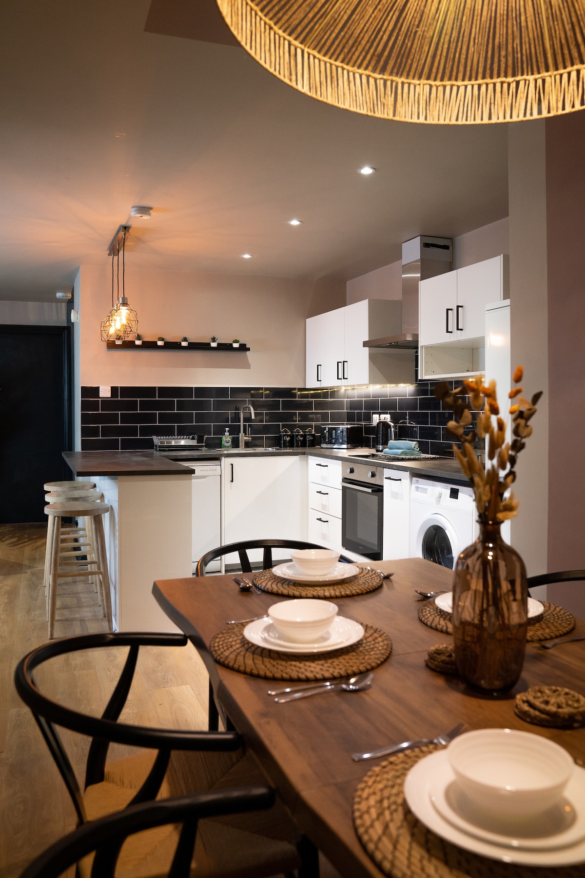 Căn hộ 2 phòng ngủ ✨ hiện đại và rộng rãi với chỗ đỗ xe an toàn ✨ Thư giãn theo phong cách tại căn hộ hai phòng ngủ rộng rãi, kiểu dáng đẹp này với phòng ngủ đôi thanh lịch, phòng tắm hiện đại và phòng khách không gian mở thoải mái với giường sofa. Nấu ăn dễ dàng trong nhà bếp được trang bị đầy đủ tiện nghi, tận hưởng sự tiện lợi của một phòng tiện ích với máy giặt, Wifi cực nhanh và TV thông minh. Ngoài ra, được hưởng lợi từ chỗ đỗ xe miễn phí trên đường phố và chỗ đỗ xe tầng hầm an toàn cho một chiếc xe — hoàn hảo cho các chuyên gia, cặp đôi hoặc gia đình.
