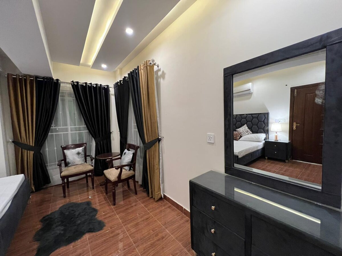 Chào mừng bạn đến với căn hộ Airbnb đặc biệt của chúng tôi ngay trung tâm Bahria Town Lahore. Trải nghiệm sự pha trộn hoàn hảo giữa sự sang trọng và sạch sẽ trong một khung cảnh độc đáo, mang đến tầm nhìn ra Tháp Eifal từ mọi cửa sổ và không nằm trong đám đông khu vực trung tâm tháp Eifal. Gần tất cả các tiện nghi của thị trấn Bahria. Bước vào một thế giới thoải mái và thanh lịch, với thiết kế hiện đại và sự chú ý đến từng chi tiết. Yên bình về chỗ đỗ xe và sự yên tĩnh Nghỉ ngơi thoải mái khi biết căn hộ của chúng tôi được vệ sinh kỹ lưỡng vì sự an toàn và sức khỏe của bạn.