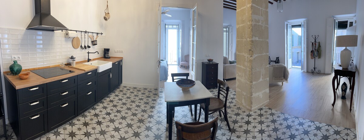 Trải nghiệm thành phố Cádiz lịch sử trong căn hộ 3 phòng ngủ, 3 phòng tắm độc đáo của chúng tôi nằm trong một tòa nhà từ những năm 1800. Được một nghệ sĩ địa phương cải tạo, ngôi nhà rộng rãi này kết hợp giữa sự sang trọng hiện đại và nét quyến rũ cổ điển. Thoải mái cho các nhóm hoặc gia đình. Nằm ngay trung tâm phố cổ, chỉ cách Bãi biển La Caleta 12 phút đi bộ. Có điều hòa, Wifi nhanh và tầm nhìn toàn cảnh thành phố. Là một căn cứ hoàn hảo để khám phá thành phố cổ nhất Andalusia.