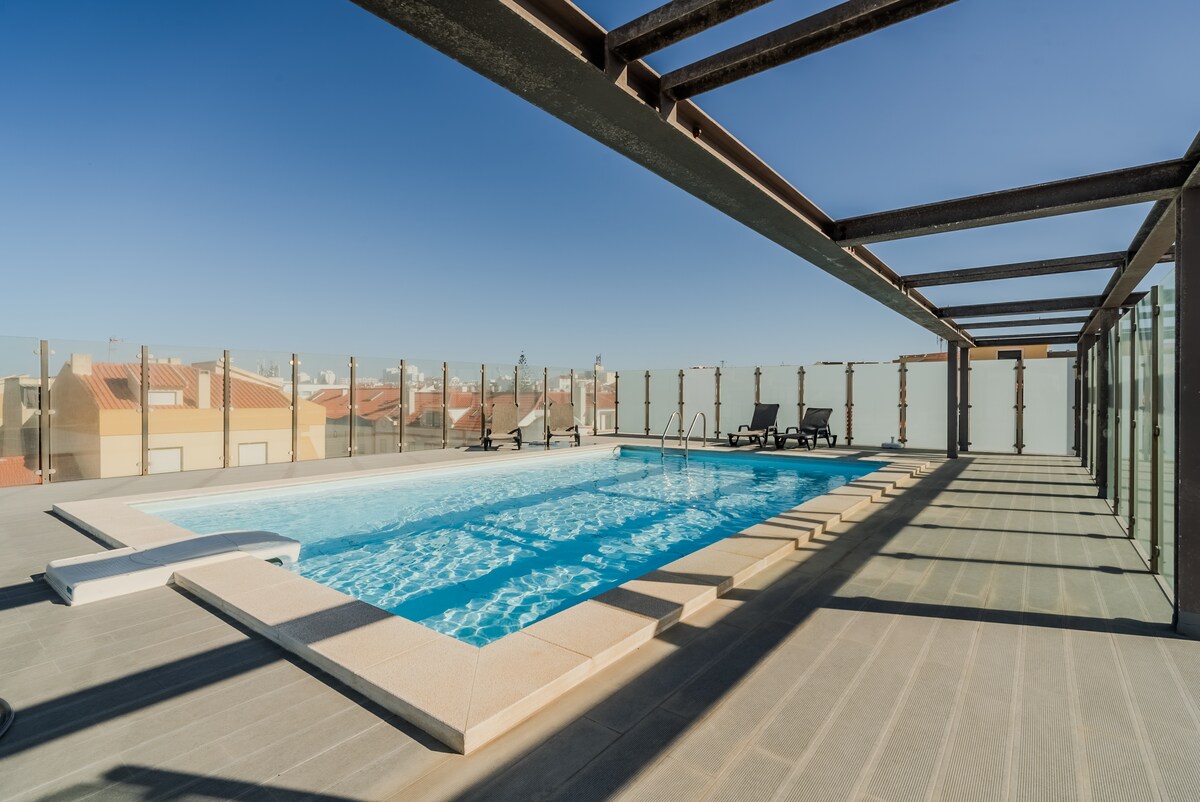 A stylish 1-bedroom rooftop apartment with a private terrace and stunning views of the Sao Jorge Castle and Tagus river. Located in the heart of Lisbon, in Marques de Pombal close to the emblematic Eduardo VII park and Avenida da Liberdade. ⚠️PLEASE NOTE there is construction work next door and may be noisy during the day** The rooftop apartment is accessible via an outdoor spiral staircase. Due to the stairs, please note that this apartment is not suitable for people with reduced mobility.