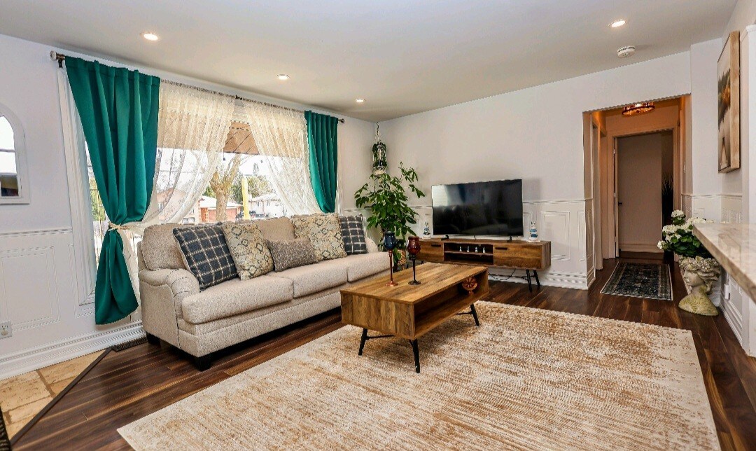 Welcome to our charming main floor apartment in the beautiful city of Orillia! This space is is suitable for families or small groups looking for a comfortable stay in a convenient location. This is a fully furnished home that features three bedrooms, one bathroom, a fully equipped kitchen with all the essentials needed to prepare your own meals. The living room is bright and cozy with a 43" Samsung Smart TV including Netflix, unlimited high speed internet and a spacious 6 seater dining table.