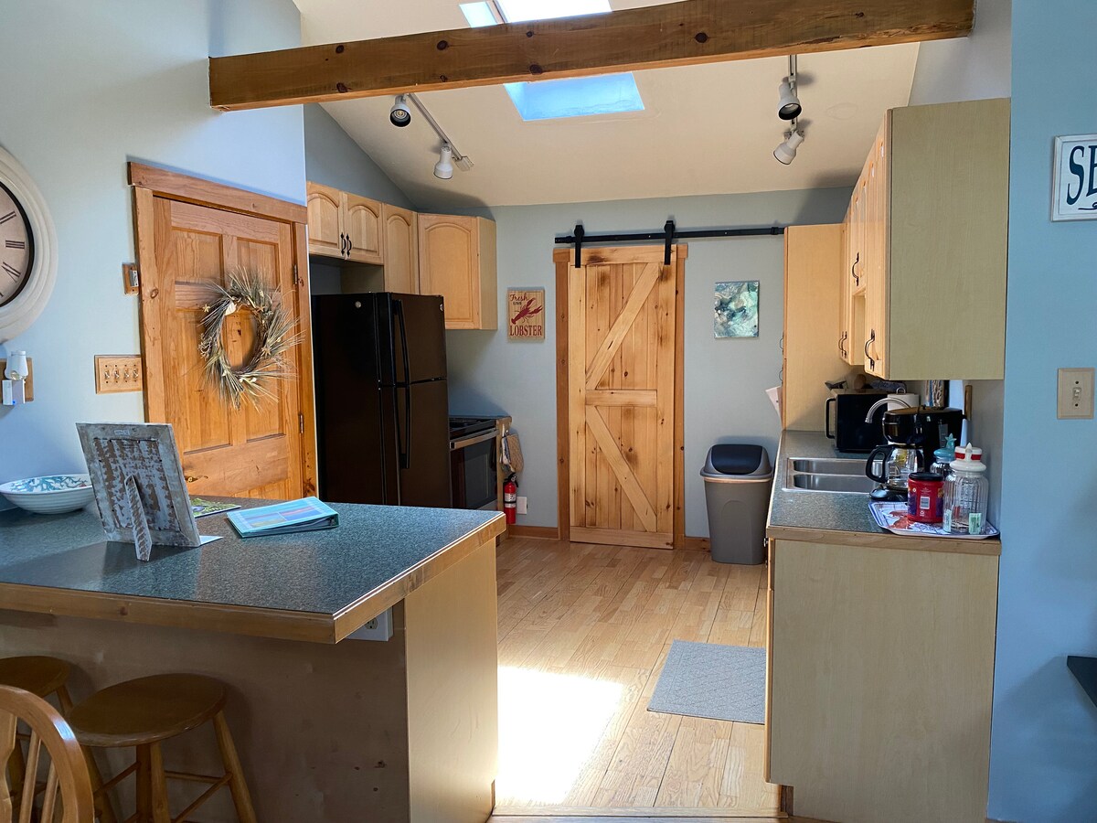 Brithaven Farm nằm trên 28 mẫu đất có cánh đồng, đồng cỏ và vườn trong rừng. Chúng tôi chỉ cách East Beach và Khu bảo tồn động vật hoang dã Pond của Allen 2 dặm. Chúng tôi hoàn toàn riêng tư khỏi đường và đến bằng một con đường dài xuyên qua rừng, mở ra cánh đồng và đồng cỏ Chỗ ở cho thuê có 2 tầng, một boong có mái hiên lớn với bàn ăn và ghế để thư giãn và ngắm cảnh. Có một khu vực sinh hoạt, ăn uống và bếp mở với những cánh cửa kiểu Pháp dẫn đến boong.