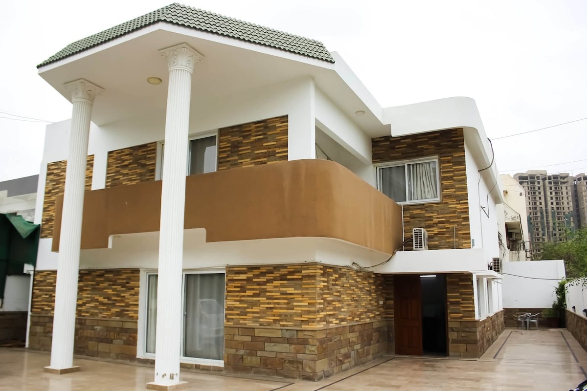 Ẩn mình ngay trung tâm Karachi, nhà khách của chúng tôi mang đến một kỳ nghỉ yên tĩnh giữa sự nhộn nhịp của thành phố. Tận hưởng quyền sử dụng độc quyền khu vực ngoài trời xinh đẹp của chúng tôi, một tính năng hiếm có ở Karachi Airbnb, hoàn hảo để thư giãn và nghỉ ngơi. Đặc quyền hàng đầu- • Bữa sáng miễn phí ngon miệng để bắt đầu một ngày mới của bạn • Hướng dẫn du lịch để khám phá Karachi như một người dân địa phương • Gần các trung tâm mua sắm, nhà hàng, trường đại học, trung tâm thể dục, máy ATM và bệnh viện • Chỗ ở an toàn và an ninh với bầu không khí như ở nhà Di chuyển từ sân bay
