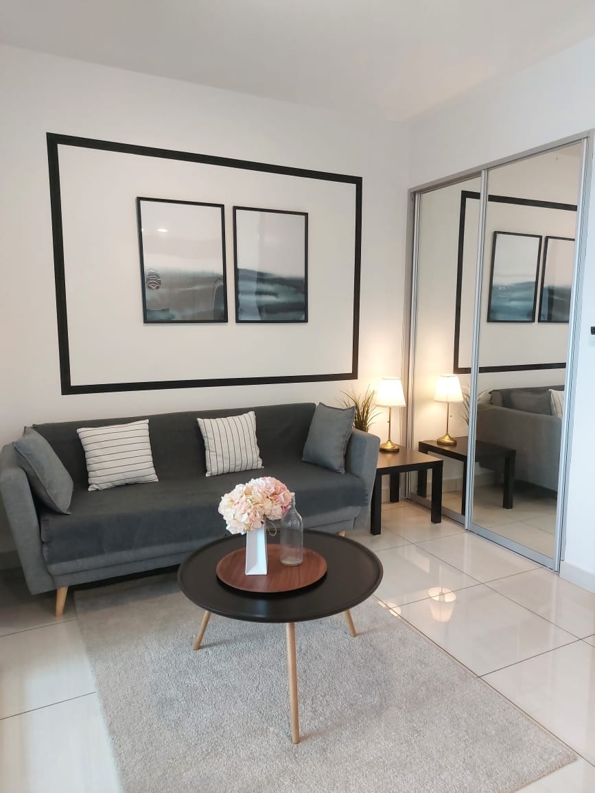 (1+1 BR & 1 bathroom) Contemporary modern and cozy condo in the heart of JB city centre. Suitable for 4pax family, friends and business group. **5mins to CIQ, City Square, KSL, Pelangi, and Larkin **8mins to Mid Valley Southkey, Larkin Sentral and Sentosa **15 mins drive to Paradigm mall, Sutera, Skudai and Mount Austin ✔ 4K SmartTV ✔ High Speed Wi-Fi, working tables with extension plug ✔ Washer ✔ Airconds in every rooms. ✔ Atari console, Mahjong, and Board games. ✔ FREE parking for 1 car