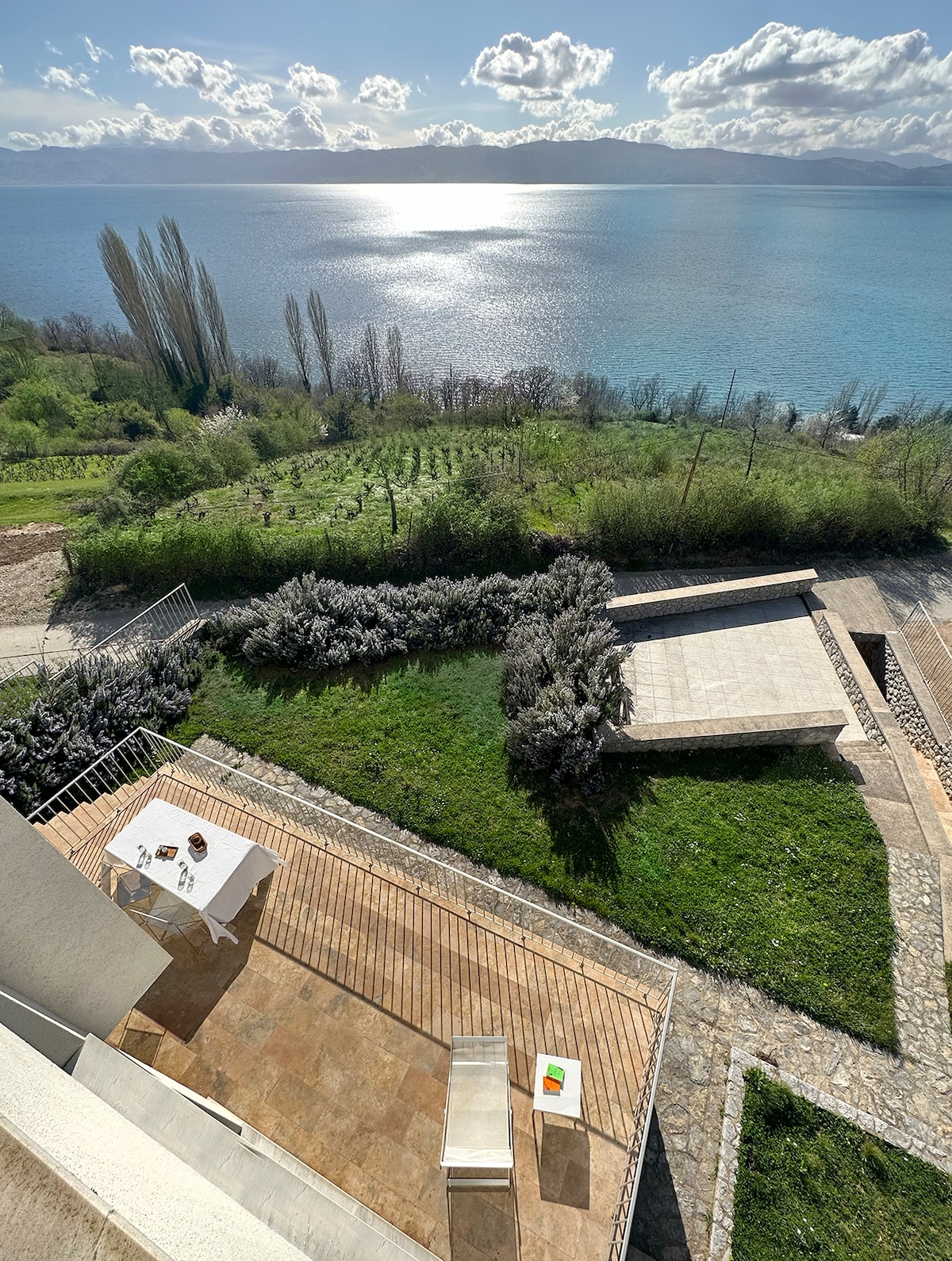 Tọa lạc tại điểm cao nhất của Pestani (Ohrid), phòng của bạn (tầng hai) có tầm nhìn độc đáo ra Hồ Ohrid và núi Galicica. Được bao quanh bởi cây xanh và thiên nhiên phong phú, bạn có thể tận hưởng trên một trong 5 sân thượng nhìn ra hồ hoặc núi, hoặc chỉ đơn giản là ngồi trong vườn bên đài phun nước và lắng nghe âm thanh của dòng sông. Trong phòng sang trọng, bạn có 2 phòng ngủ, 1 phòng khách, nhà bếp, phòng tắm, nhà vệ sinh, sân thượng khép kín với lò sưởi và khu vườn xanh khổng lồ.