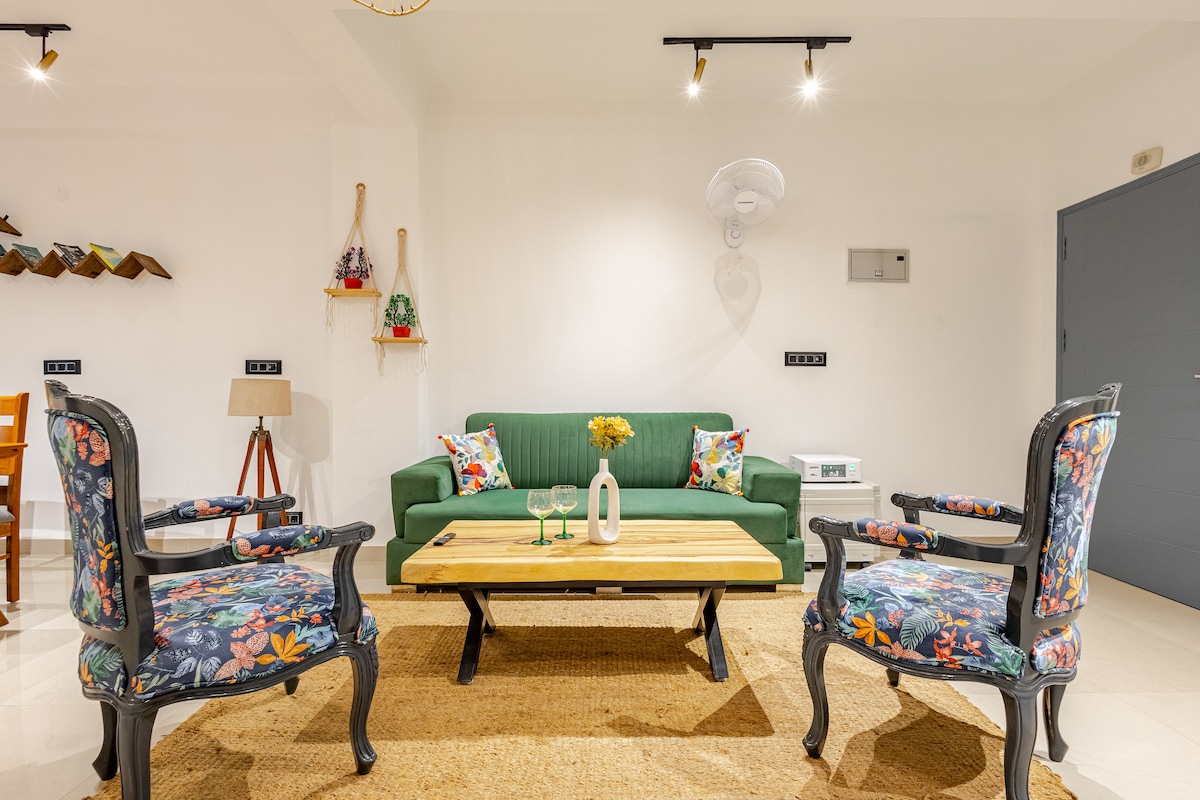 Trốn đến Poppy Meadows Himachal của chúng tôi, nơi sự thoải mái kết hợp với sự thanh lịch trong một khung cảnh lấy cảm hứng từ boho. Thư giãn trong khu vực sinh hoạt rộng rãi, bao gồm ghế sofa ấm cúng và khu vực ăn uống hoàn hảo cho các cuộc tụ họp. Tận hưởng những đêm xem phim trong phòng máy chiếu chuyên dụng với tầm nhìn ra dãy Himalaya từ ban công lớn. Nhà của chúng tôi cũng có 3 phòng tắm hiện đại, bếp đầy đủ tiện nghi và bãi đỗ xe riêng. Duy trì kết nối với WiFi miễn phí và thư giãn trong một môi trường phong cách, thanh bình được thiết kế để thư giãn tối đa.
