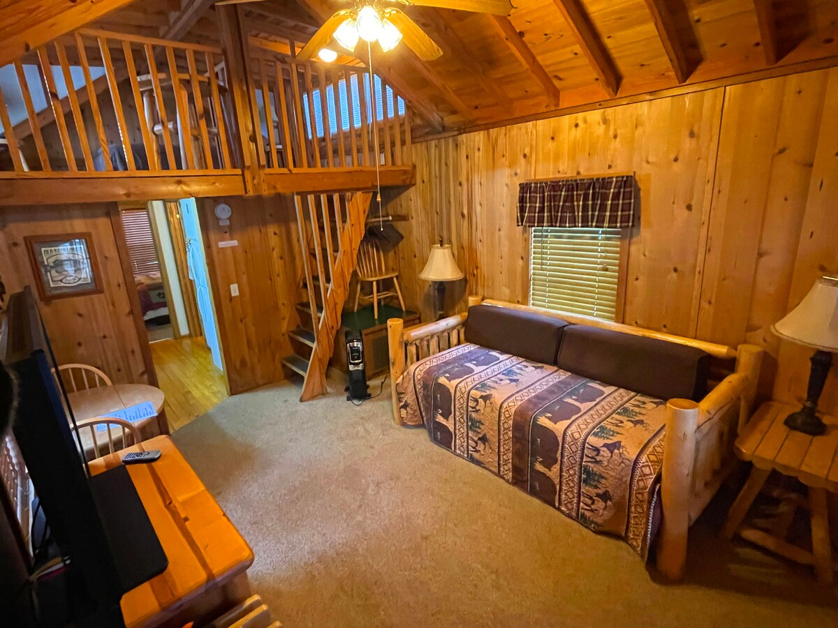 This is a lovely cabin tucked under the pines. Close to Mt. Shasta and skiing, fishing and hiking areas as well as the historic town of Dunsmuir. There’s a kitchen with a full size refrigerator so you can stay in or enjoy a lovely meal in town. Mt. Shasta is about 10 minutes away with wonderful shops and restaurants to explore. The cabin is located in Cedar Pines RV Resort so there is ample parking for trailers. There are security cameras around the park, but no cameras in the cabin