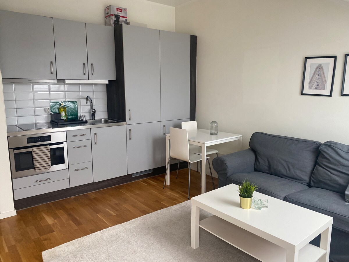 We rent a spacious, bright and fully furnished 1 bedroom apartment of 52sqm in our house from the 70's. The apartment has its own entrance and is completely renovated with fine modern materials. The entire apartment is equipped with underfloor heating under the light gray concrete floor which extend through the entire apartment. New modern kitchen from Ballingslöv with everything you need to cook for one or more people. The apartment has an open floor plan.