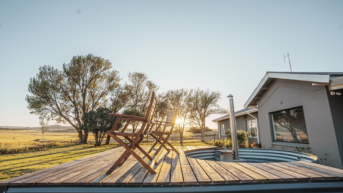 Giữa những ngôi nhà koppies đẹp như tranh vẽ này nhìn ra đồng bằng Free State. Không gian mở rộng với đi bộ đường dài, đi xe đạp leo núi, chạy đường mòn và ngắm sao trong nội dung trái tim của bạn trên trang trại cừu thế hệ thứ 3 xinh đẹp này. Lý tưởng cho những người muốn thoát khỏi cuộc sống thành phố bận rộn hoặc sau căn hộ nhỏ Corona. Không có điện được cung cấp lưới điện trong trang trại nhưng bếp gas, bình gas, tủ lạnh gas và đèn dầu có sẵn để giúp bạn kết nối lại với sự yên bình và yên tĩnh.