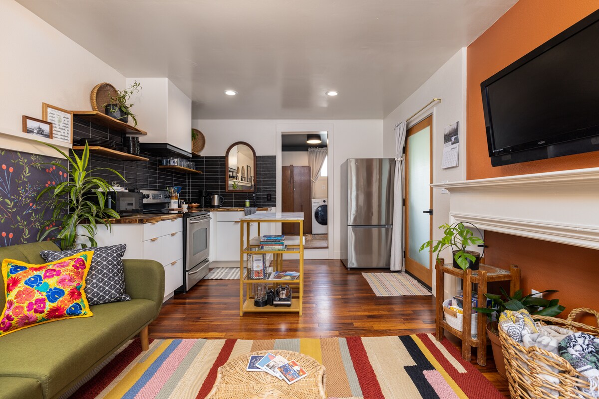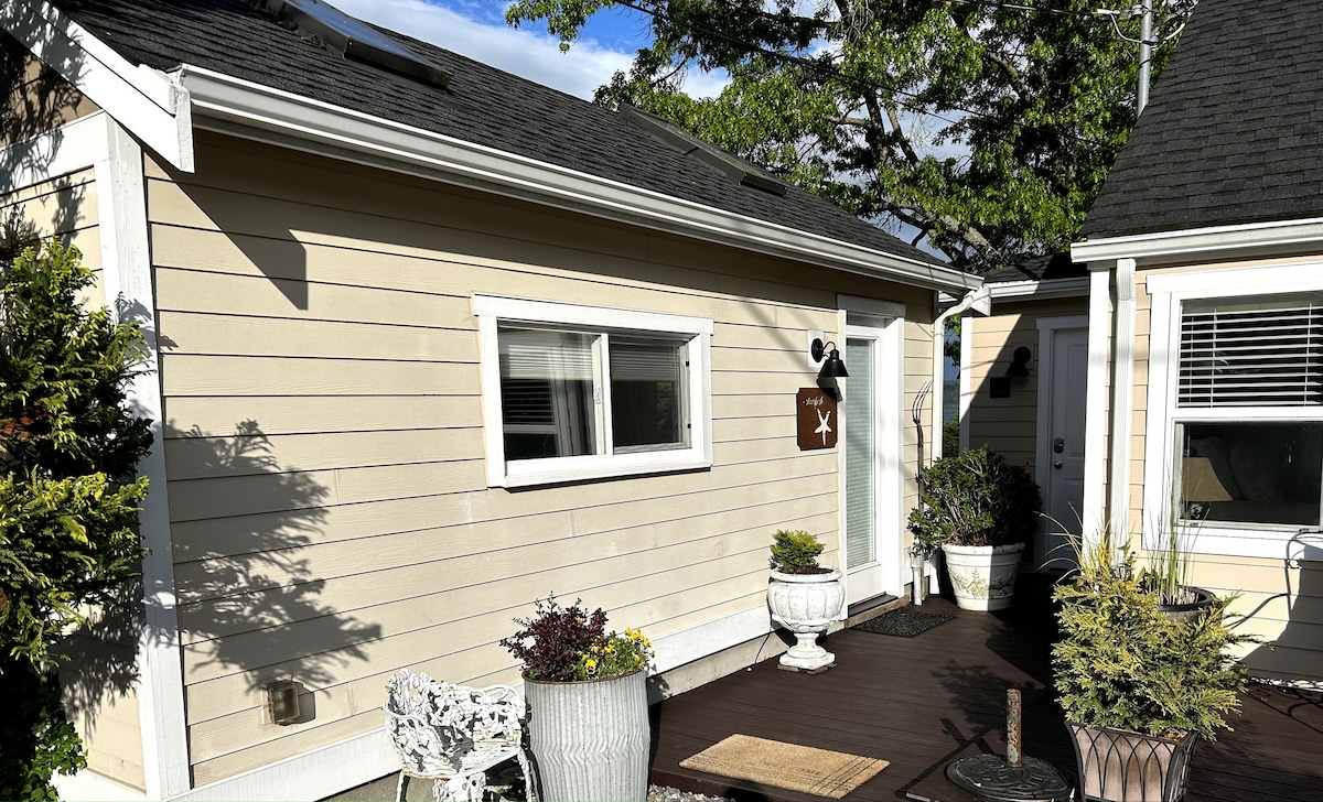 Happy Valley Studio tọa lạc trong một khu dân cư nông thôn đáng yêu, gần 2800 mẫu đường mòn đi bộ đường dài của Cộng đồng Forestlands. Mất ~15 phút (3,6 dặm) từ bến phà đến quần đảo San Juan/Sidney BC, và cách trung tâm thành phố Anacortes 5 phút dễ dàng. Bạn sẽ thích khu phố yên tĩnh và những khu vườn và ao đáng yêu của chúng tôi. Căn hộ studio sạch sẽ, ấm cúng, rộng rãi với lối vào ban công riêng và cửa sổ trời để giữ cho nó sáng sủa và vui vẻ. Bếp nhỏ đầy đủ tiện nghi, có lò vi sóng và tủ lạnh (không có bếp.)