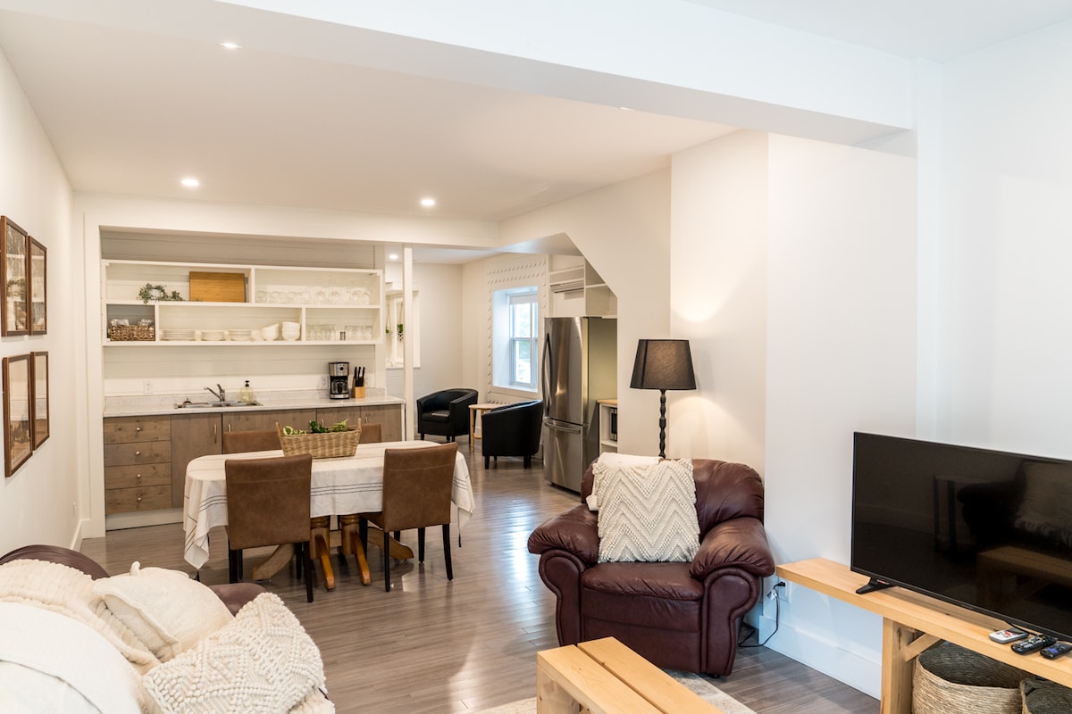 Appartement situé à 5 minutes des pentes de skis, des glissades d'eau et de terrains de golf. Situé en haut de Passion&Création un espresso céramique, un magasin d’auto téléguidé, d'une boutique de prêt à manger et à partir de 2026 une boutique de Noël. À quelques pas de l'épicerie, de la S.A.Q et du vieux Bromont. No établissement CITQ 304724
