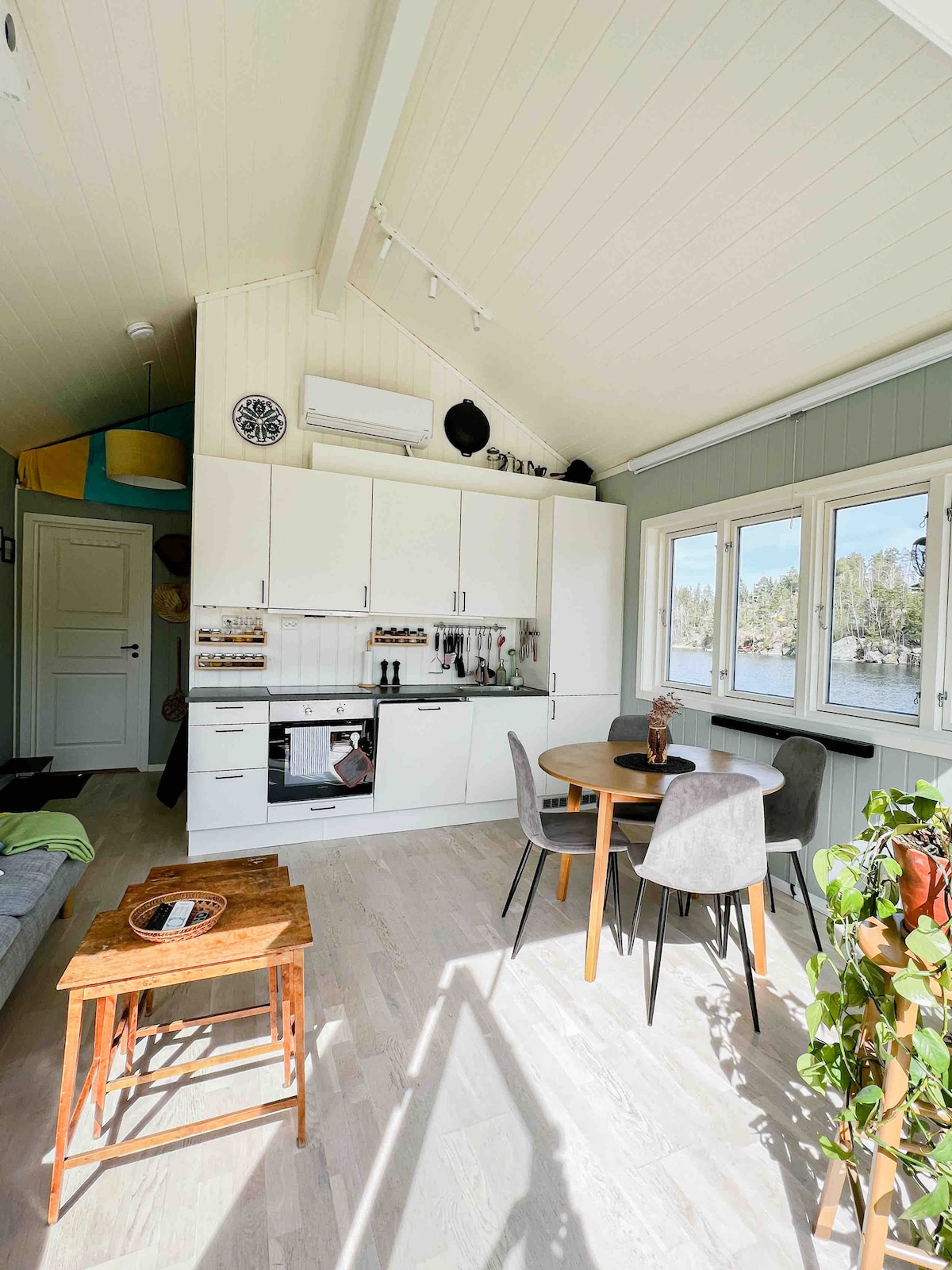Cabin ấm cúng với tầm nhìn tuyệt vời. Cách bãi biển gần nhất 200 m và cách bãi biển công cộng lớn 800 m. Mặt trời từ 8 giờ sáng đến 10 giờ tối vào mùa hè. Sân thượng lớn ở ba tầng. Nhà bếp đáp ứng tiêu chuẩn hiện đại. Cabin chính chứa các phòng ngủ (một phòng có giường đôi và một phòng có giường đơn), phòng khách, khu vực ăn uống (có ghế sofa nhà bếp có thể kê thành giường đôi) và bếp. Cabin thứ hai là phòng tắm và cabin thứ ba là phòng ngủ. Lưu ý: Cabin thứ ba không có điện.