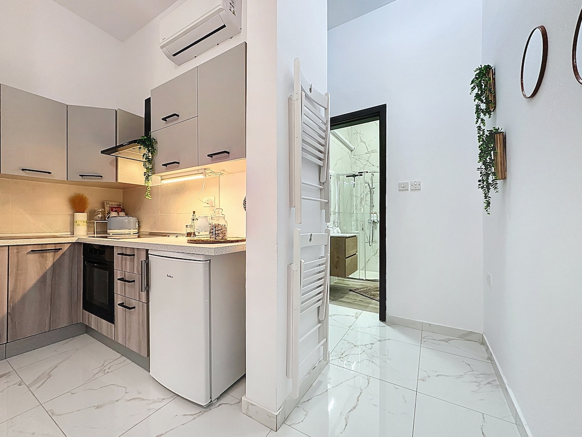 In the heart of Mellieha village, 2 min walk from the bus stop and close to the main street and church center with lots of lovely shops, supermarket, restaurants and bars. Semi-ground floor, newly renovated with modern furniture and fully air-conditioned in each room. It has a spacious living area kitchen/living/dining, a large comfortable bathroom with shower and washing machine and a large double bedroom with a small outdoor back yard. Excellent for a solo traveler or a couple.