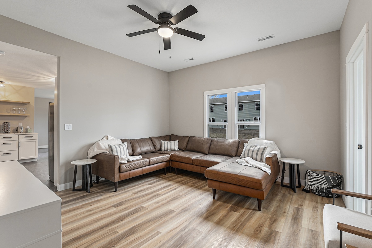 Thư giãn tại khu đất của chúng tôi ở vùng nông thôn nằm trên những ngọn đồi phía bắc Thành phố Kansas - cách Sân bay KCI (MCI), Weston, St. Joseph và Thành phố Kansas vài phút. Trải nghiệm của bạn bắt đầu với một con đường rợp bóng cây, bao gồm cây thường xanh, vườn cây ăn quả, quả mọng hoang dã, vườn thực vật bản địa, đường mòn, cánh đồng hoa dại, mảng năng lượng mặt trời, tuabin gió và khu vực đốt lửa trại giữa những tán cây. Thiên nhiên rất nhiều! Tầng hầm đã hoàn thiện thấp hơn trong nhà của chúng tôi - lối vào cầu thang riêng, không tiếp xúc. Chúng tôi có thể sẵn sàng trong thời gian ngắn!