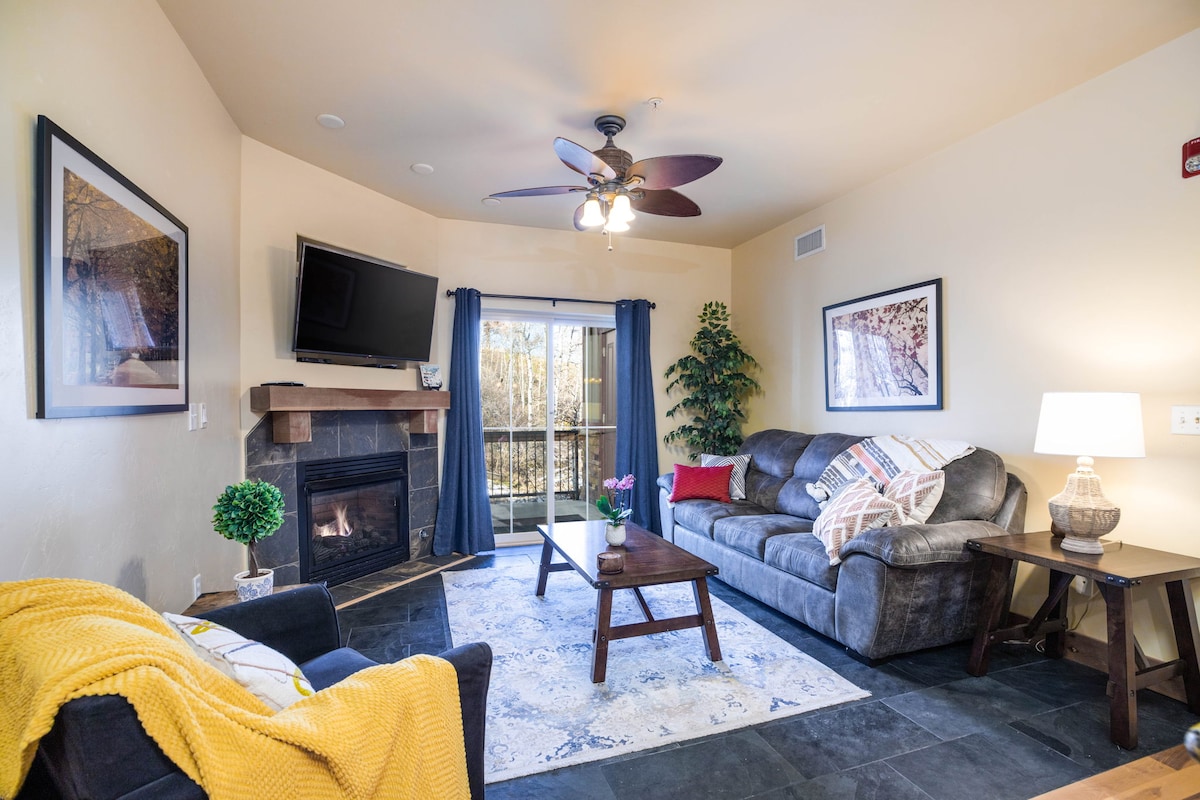 Khu trượt tuyết 1BD/1BA hiện đại, giặt ủi, ban công, bồn tắm nước nóng